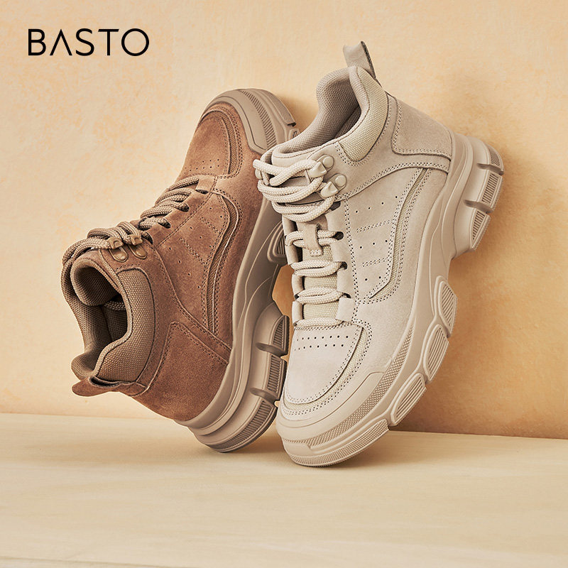 百思图23冬新款运动复古工装靴棕色马丁靴厚底增高女短靴A6620DD3