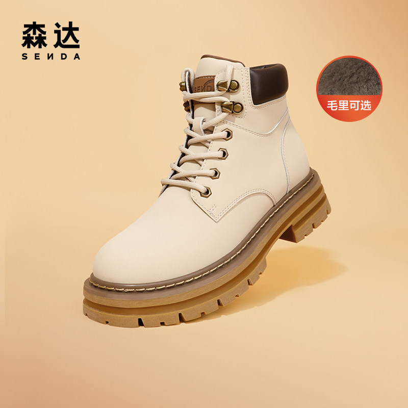 森达马丁靴女商场同款靴子户外工装靴厚底大黄靴气质短靴SGB01DD2