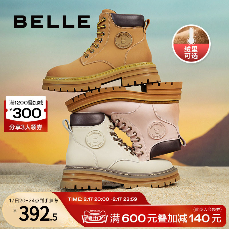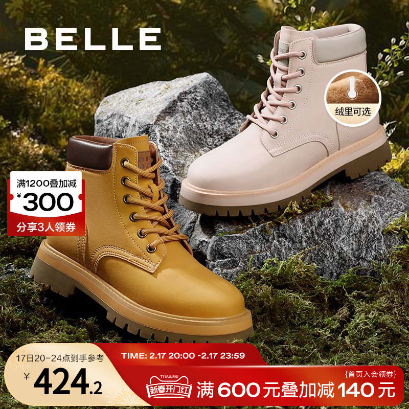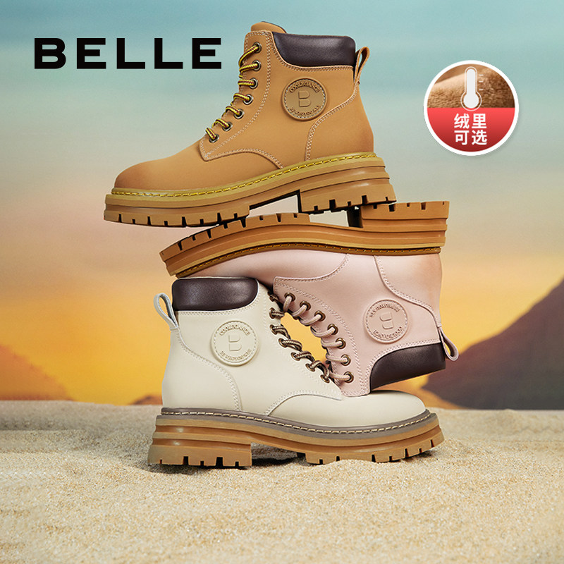 百丽新款马丁靴女秋冬短靴子加绒户外工装靴女厚底休闲大黄靴Y4P1