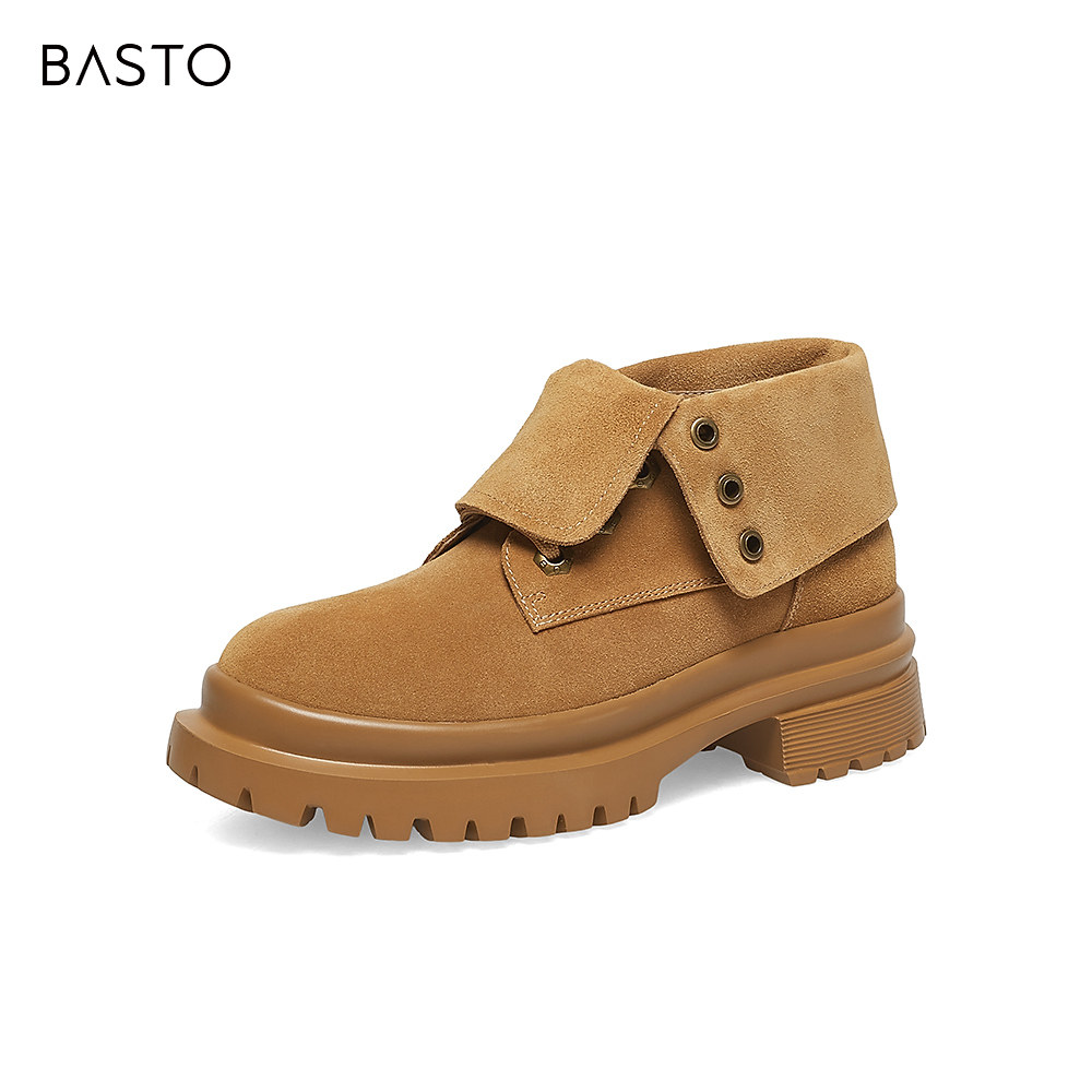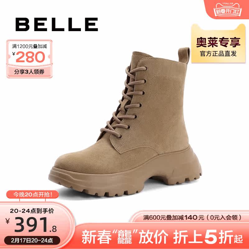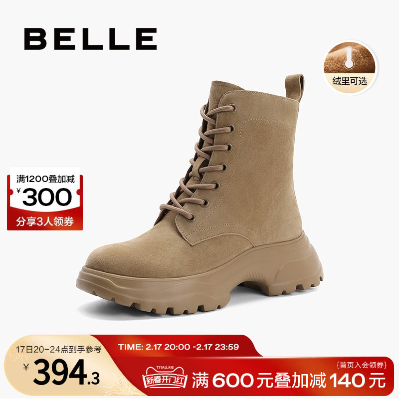 百丽复古工装靴女靴2023冬季新款靴子短靴绒面马丁靴女A2Q1DDD3