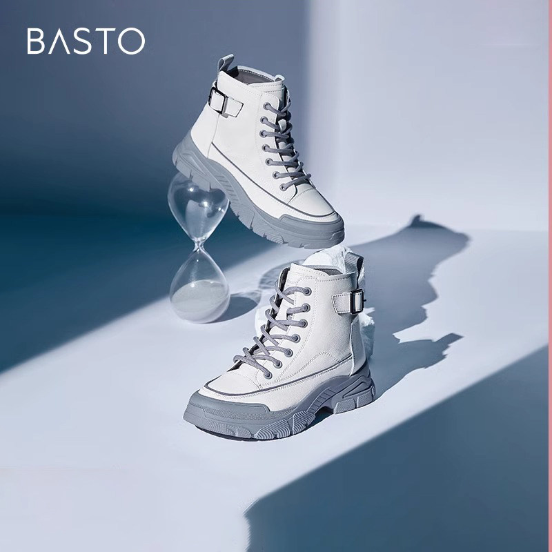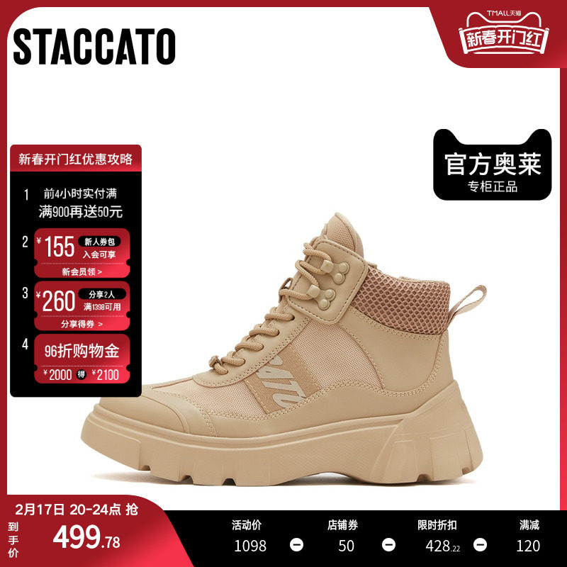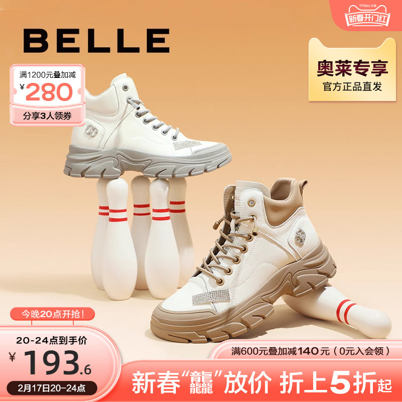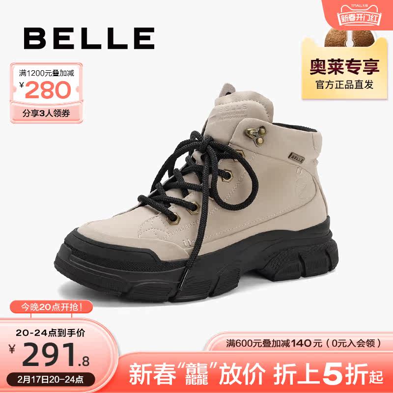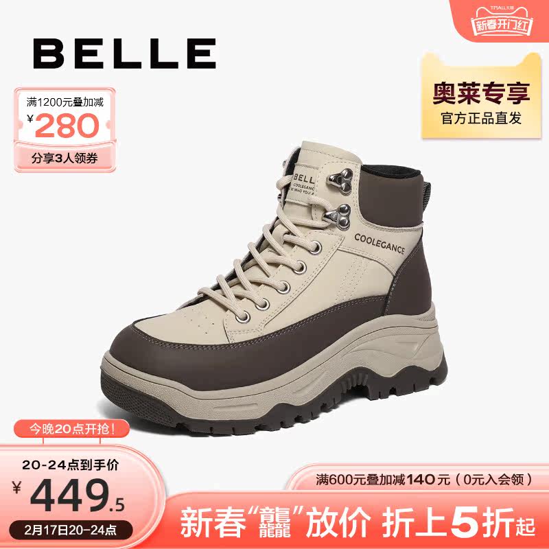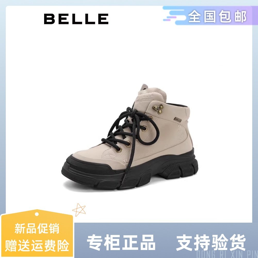 百丽工装靴女2023冬季新款鞋子高帮休闲板鞋厚底运动鞋A3C1DDM3