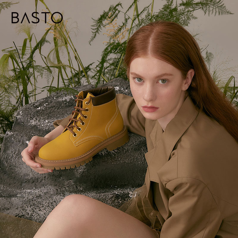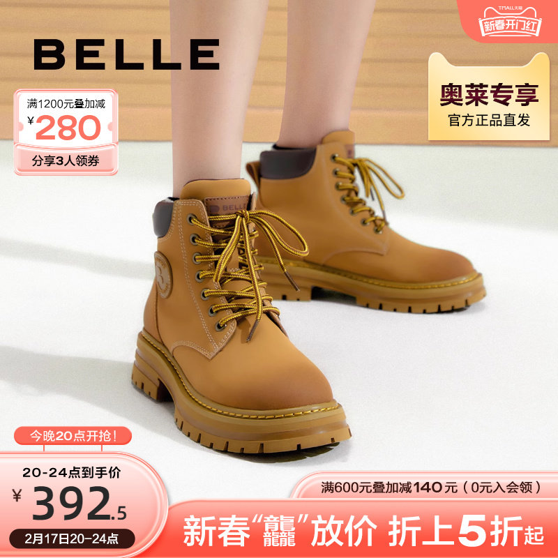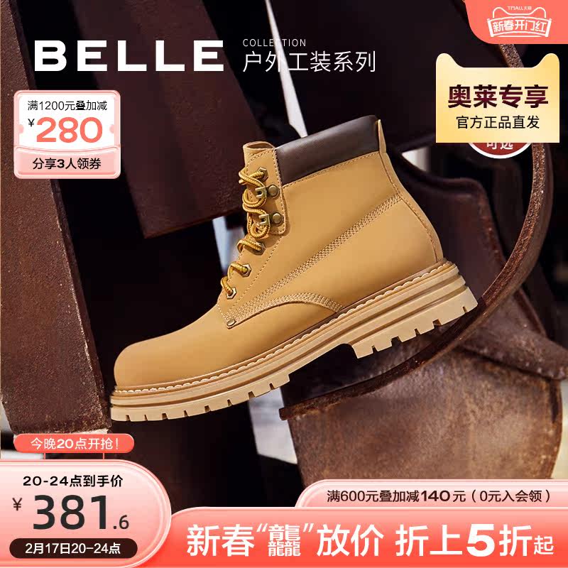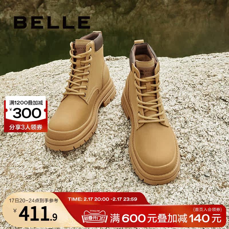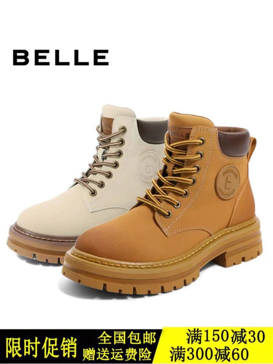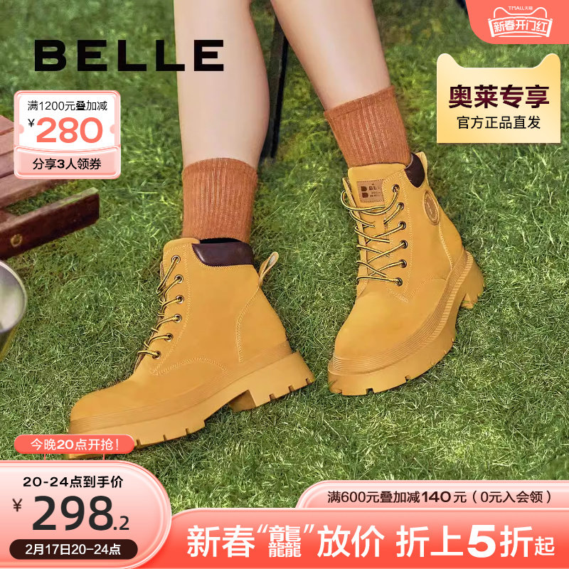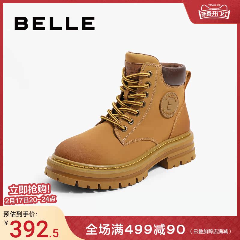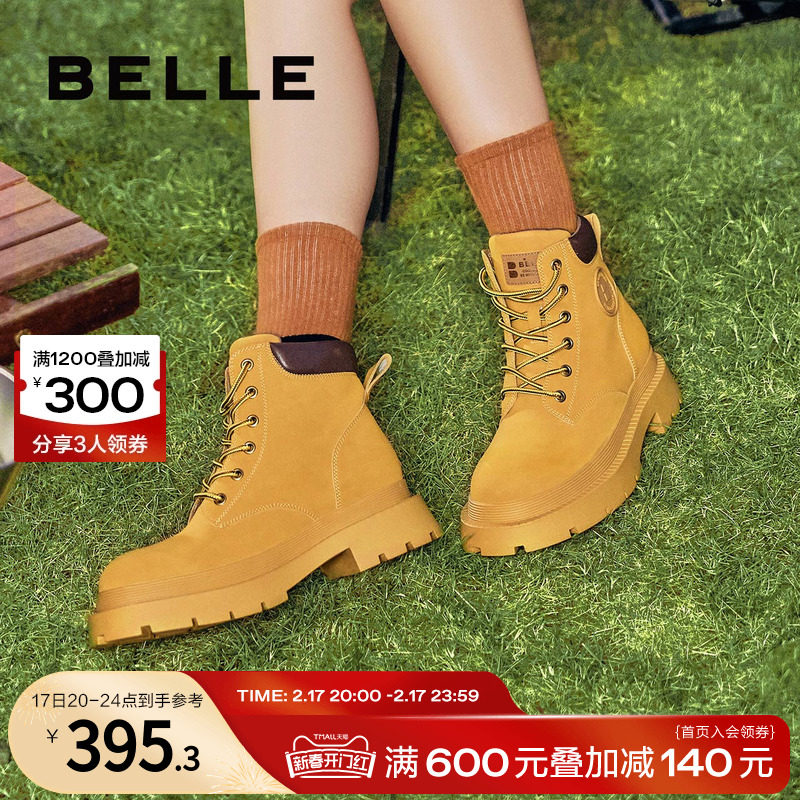 百丽马丁靴女冬季新款靴子户外露营工装靴短靴女厚底大黄靴女Y4P3