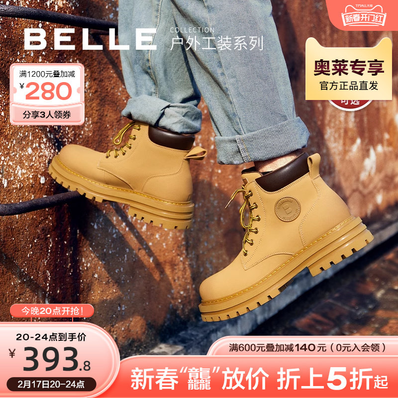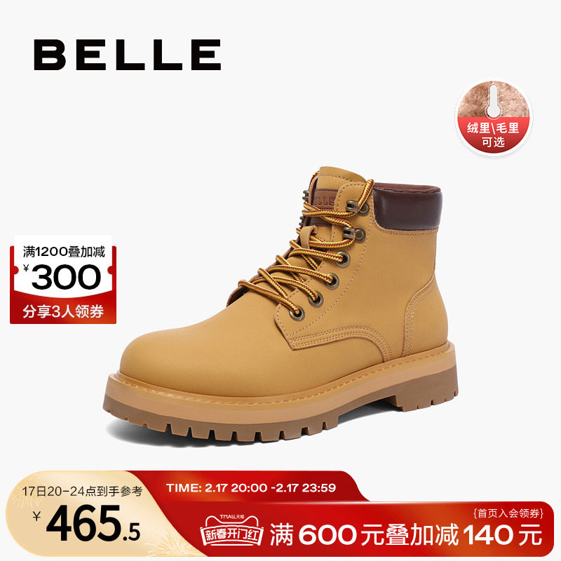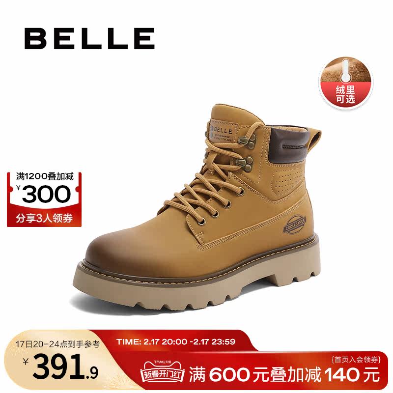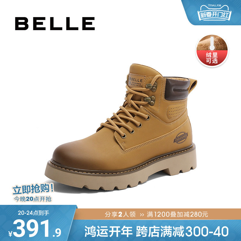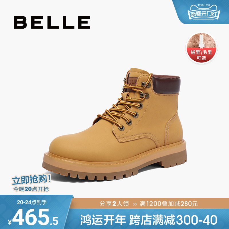 百丽马丁靴男鞋秋冬季商场同款休闲高帮工装鞋大黄靴加绒7TW01DD2