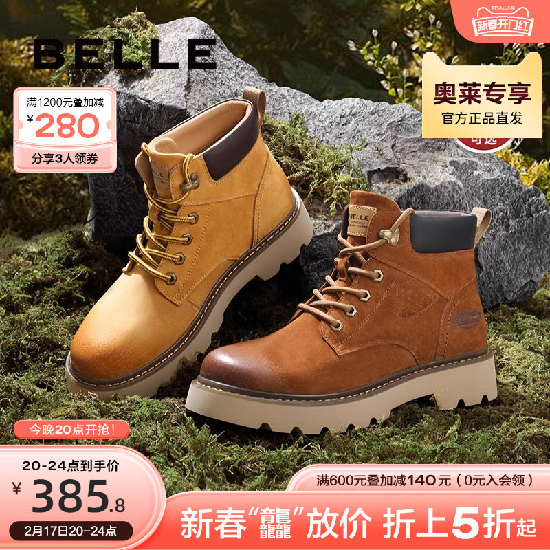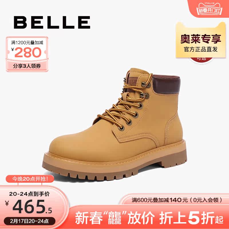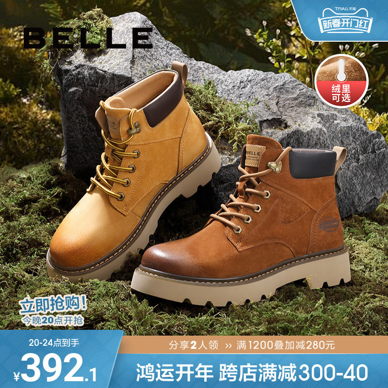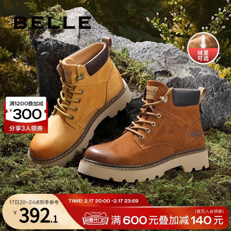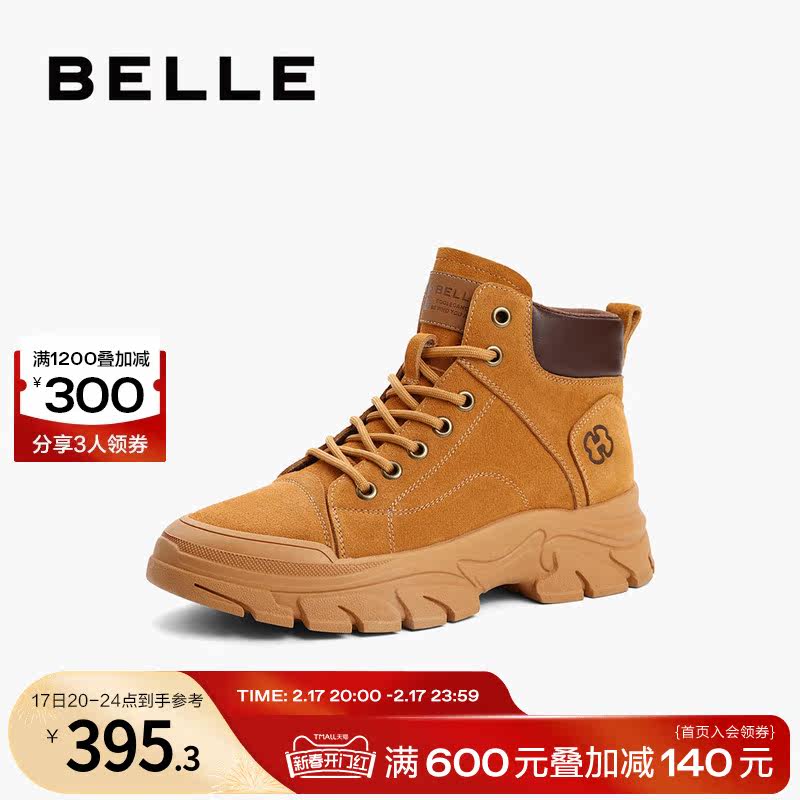 百丽马丁靴男鞋秋冬季商场同款休闲高帮工装鞋大黄靴加绒7TW01DD2