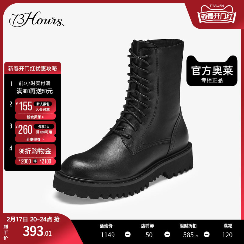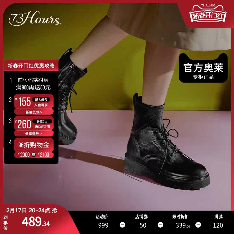 【明星同款】73hours女鞋休假中冬季新款英伦风厚底工装马丁靴女