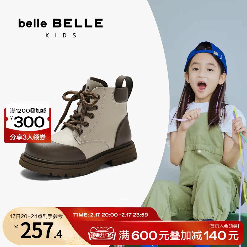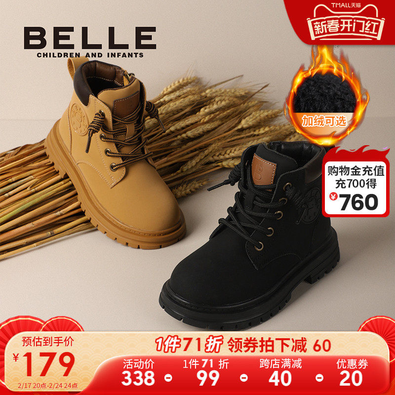 百丽童鞋加绒儿童马丁靴新款童鞋大黄靴舒适工装靴短靴G9919D93