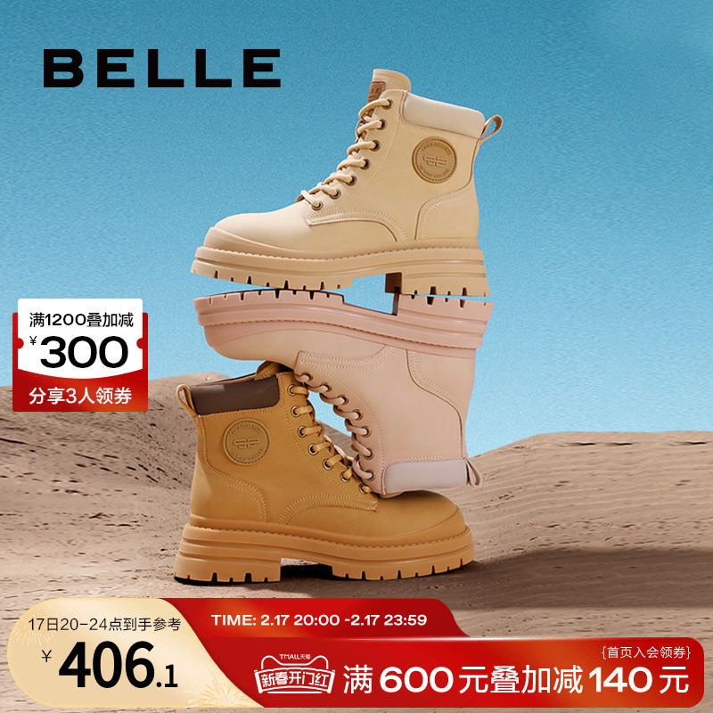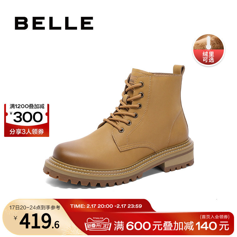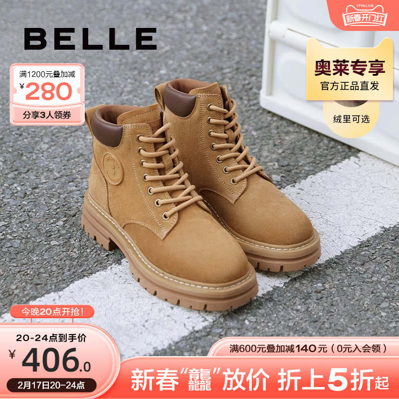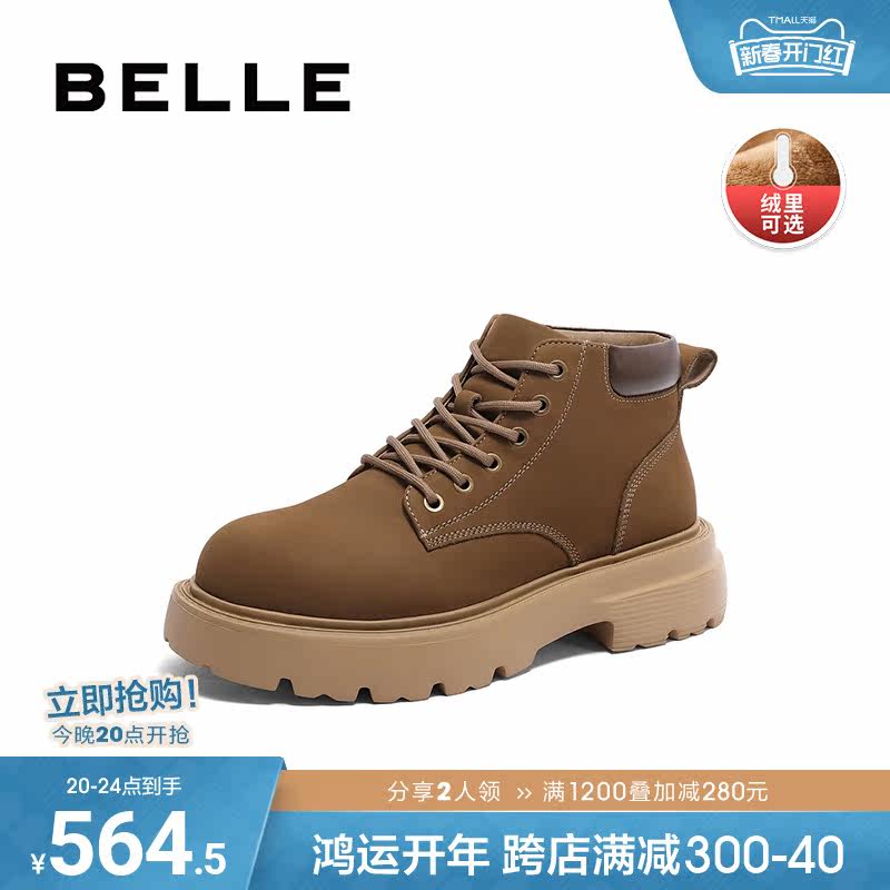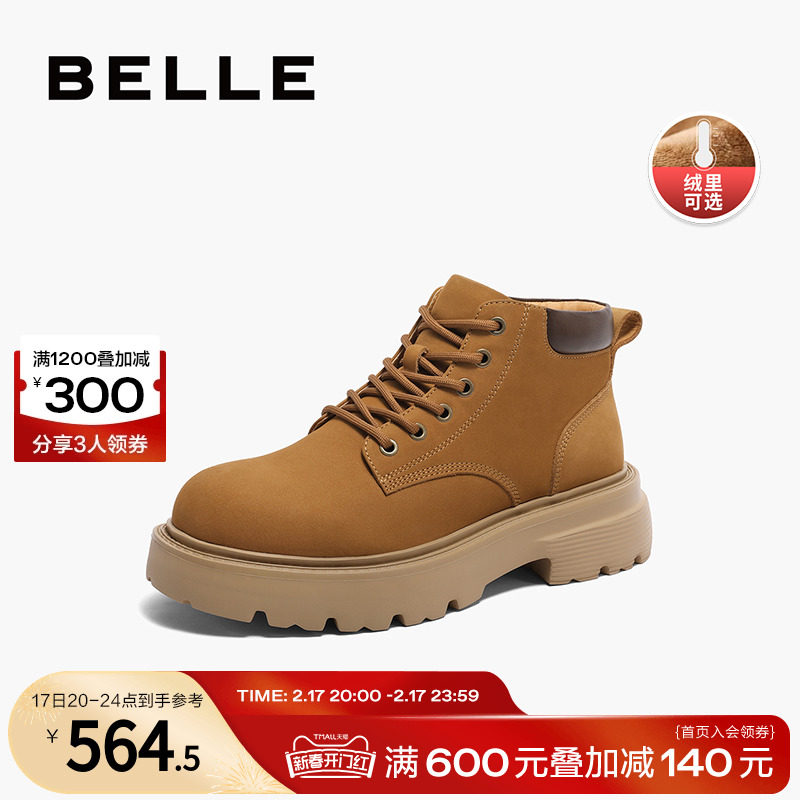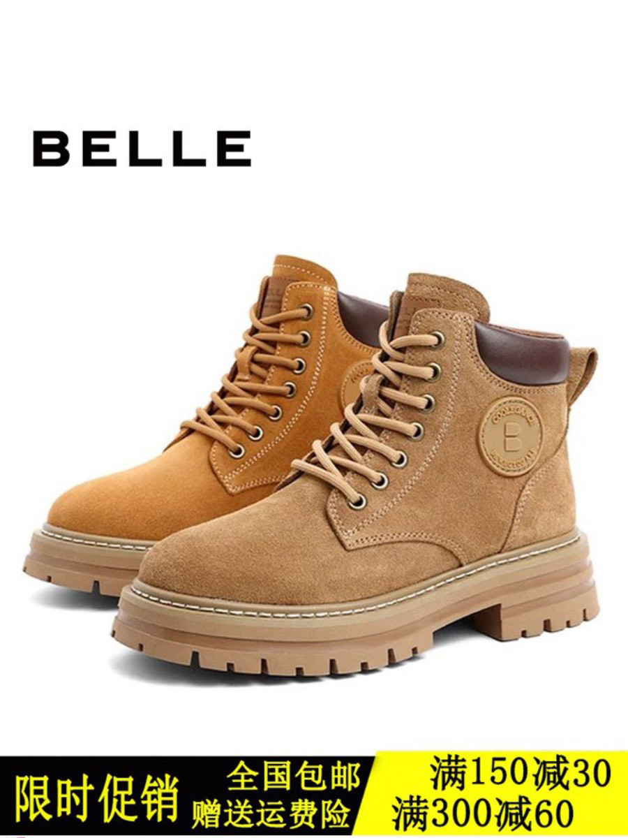 百丽加绒马丁靴女冬季复古工装靴新款厚底大黄靴Y7E1DDD2