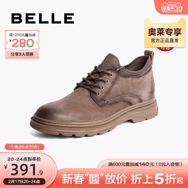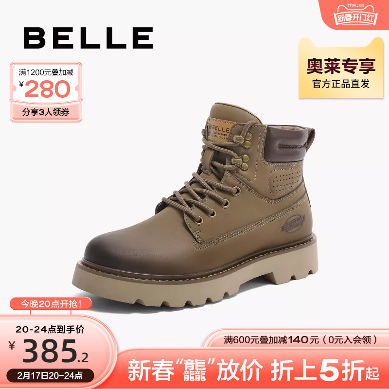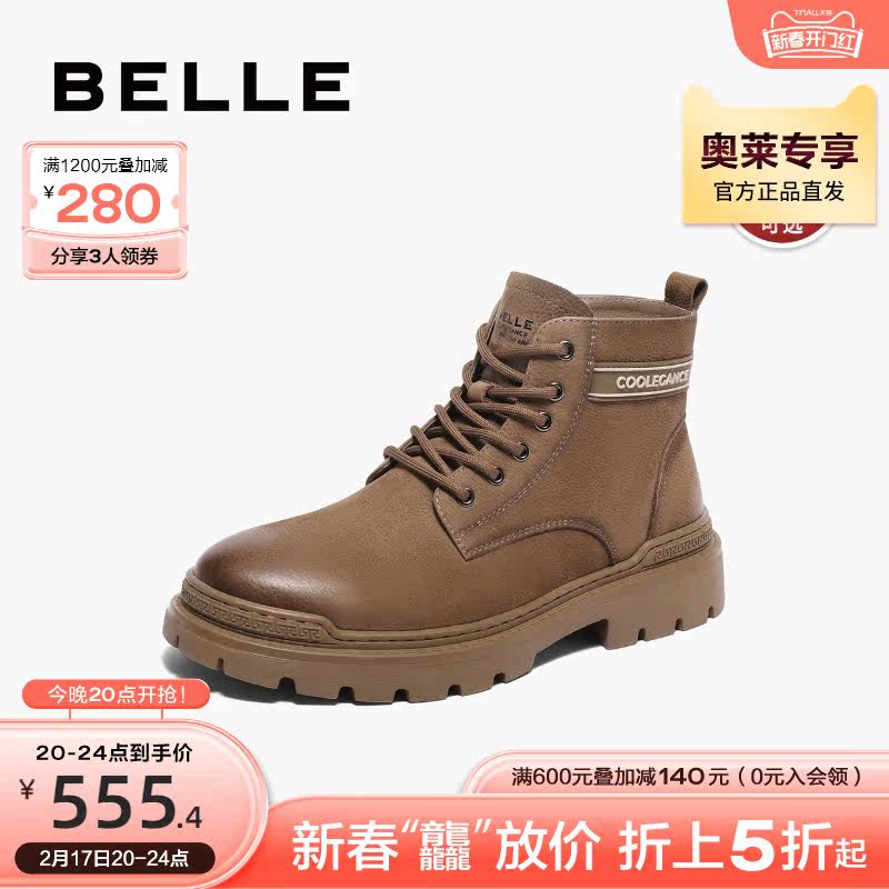 百丽大黄靴男士款男鞋复古加绒工装靴低帮马丁靴A0942DD2