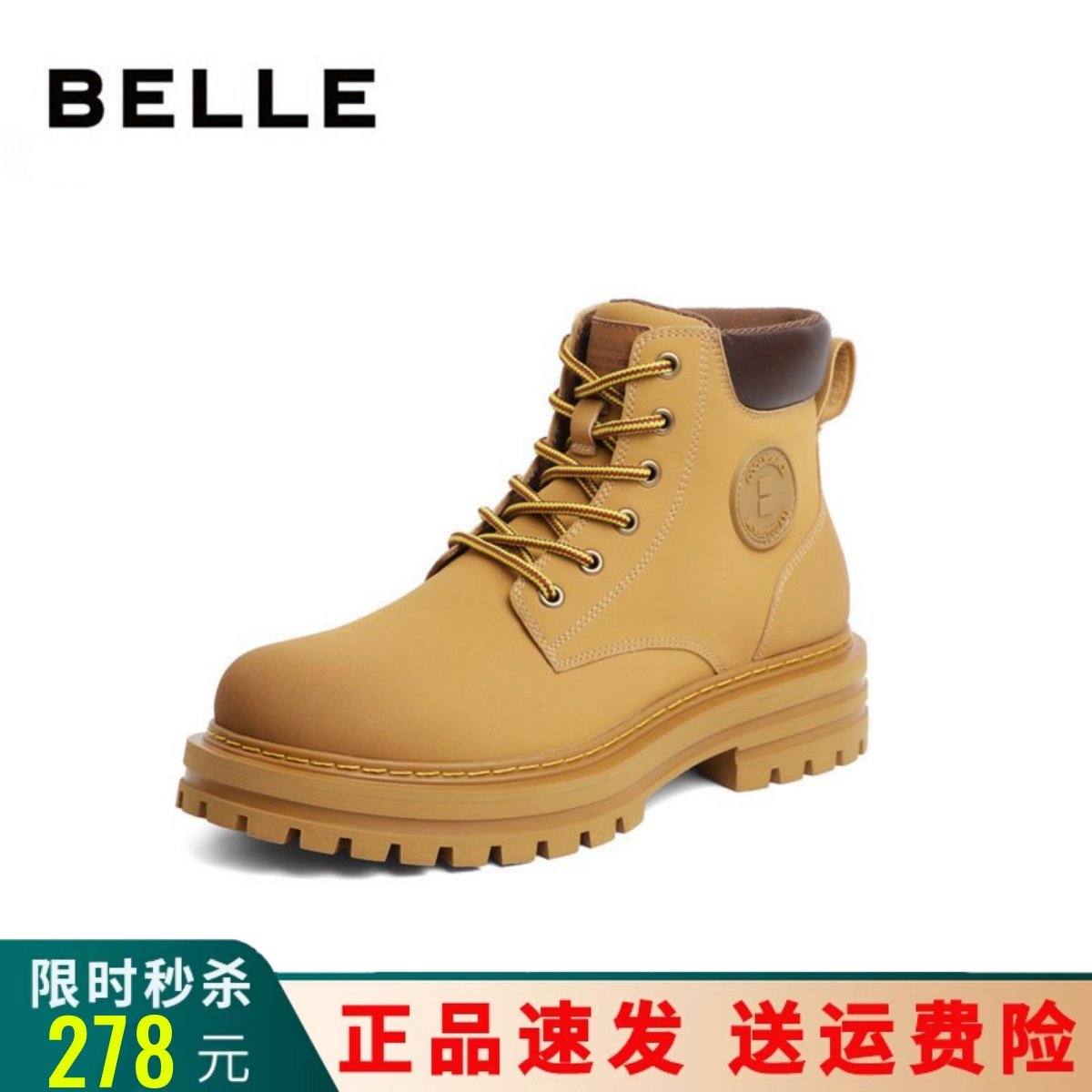 百思图23冬季新款踢不烂时尚大黄靴工装马丁靴厚底女短靴ID602DD3