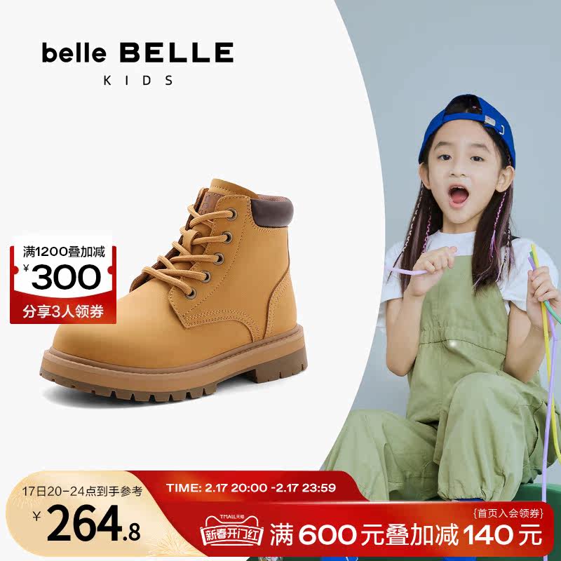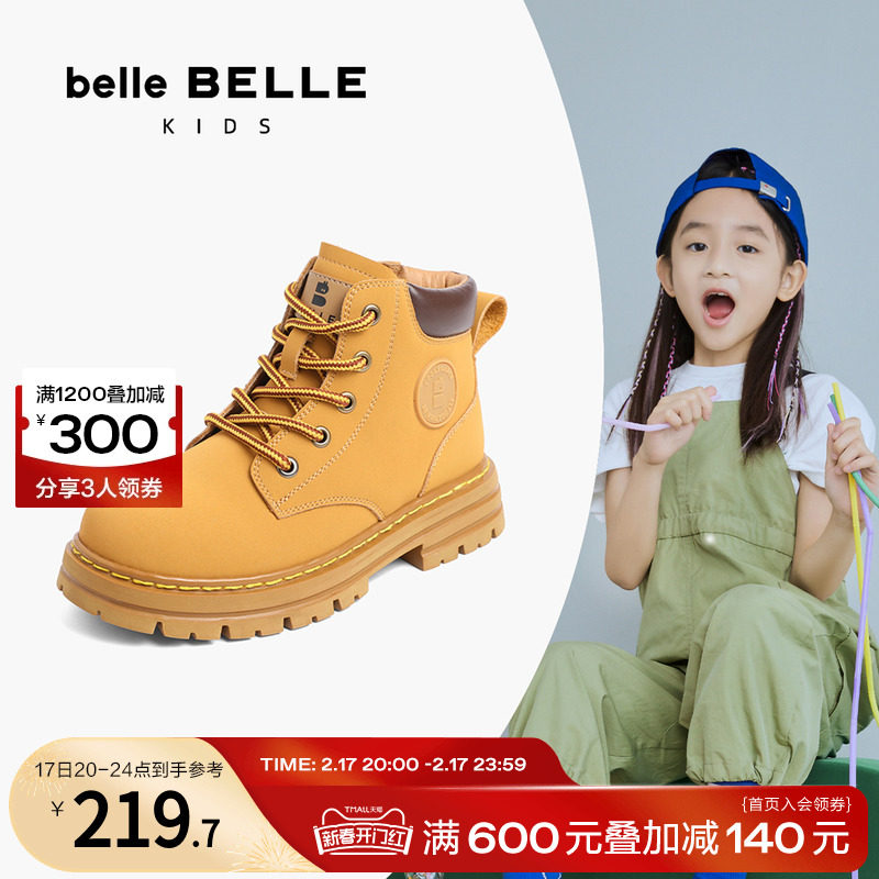 【直播间专享】百丽童鞋大黄靴加绒工装靴男童马丁靴女童短靴子