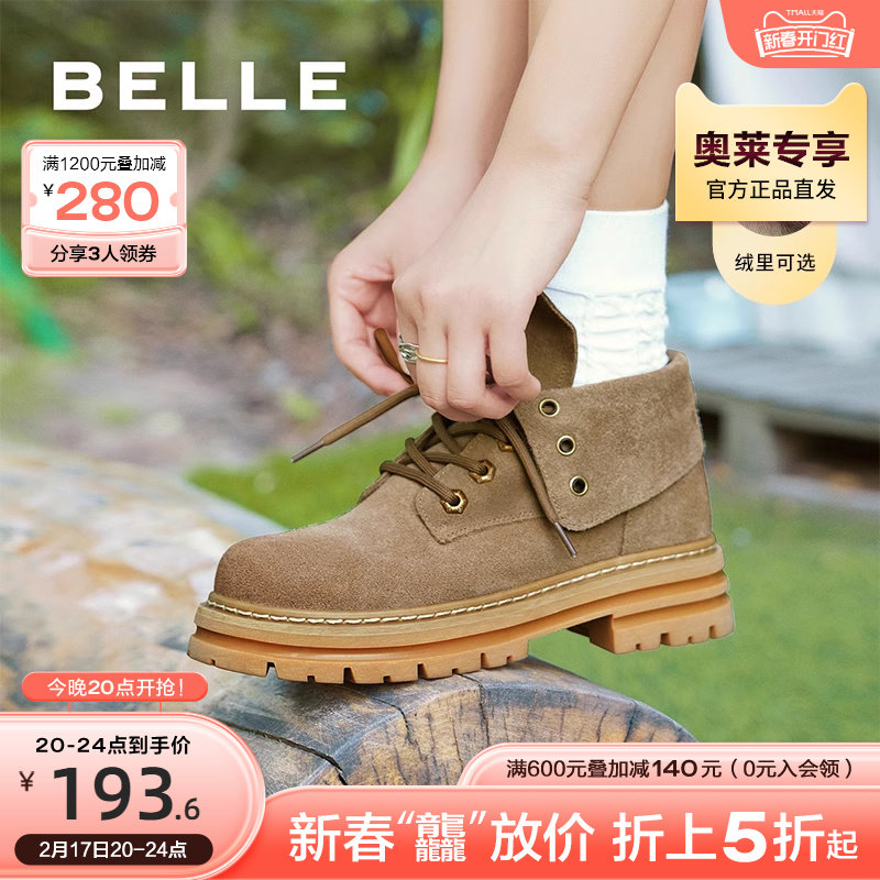 百丽复古工装靴女靴2023冬季新款靴子户外徒步短靴加绒A5C1DDD3