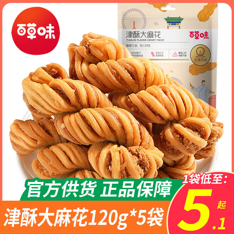 百草味麻花小脆120g*5袋网红零食特产充饥夜宵传统糕点小吃即食