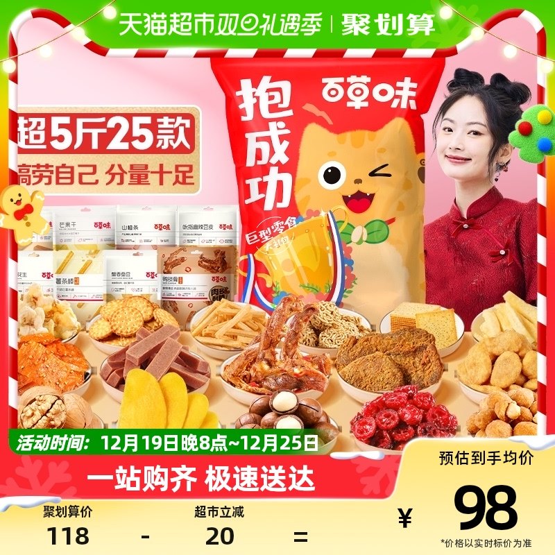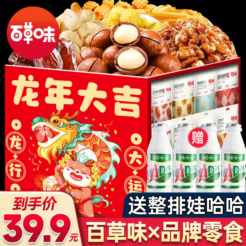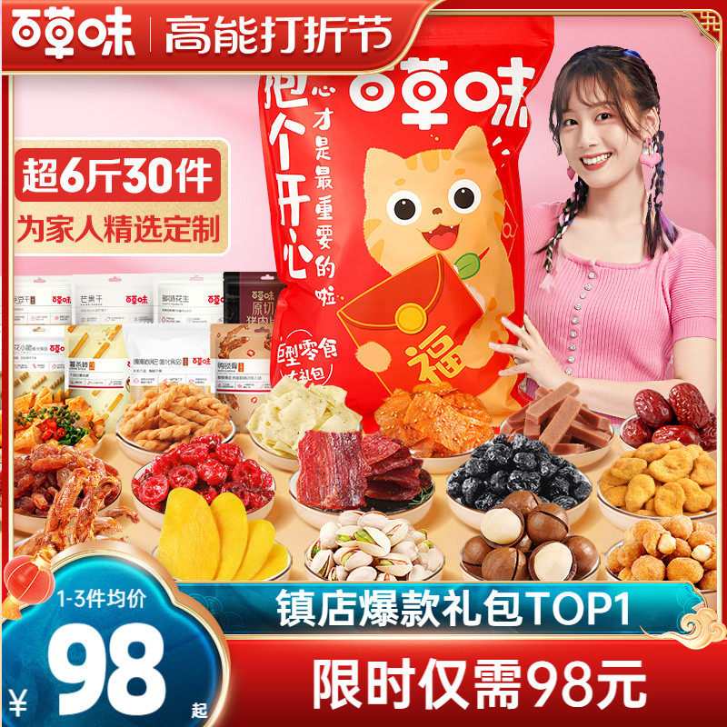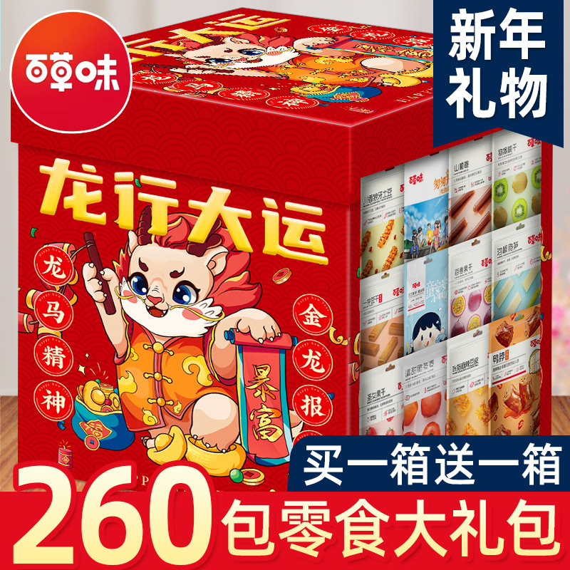 元旦百草味零食大礼包送女友男冬季新年礼物整箱儿童休闲食品大全