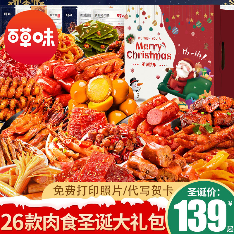 百草味零食大礼包圣诞节礼物整箱送女友礼盒肉食麻辣卤味休闲食品