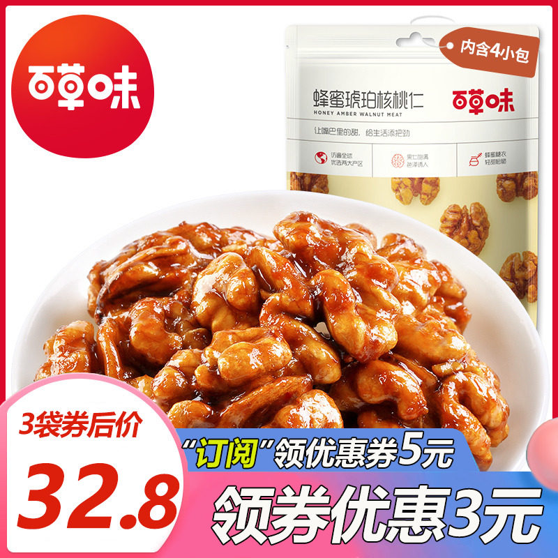 百草味琥珀核桃仁168g*3袋 坚果零食山核桃小包装 纸皮核桃肉特产