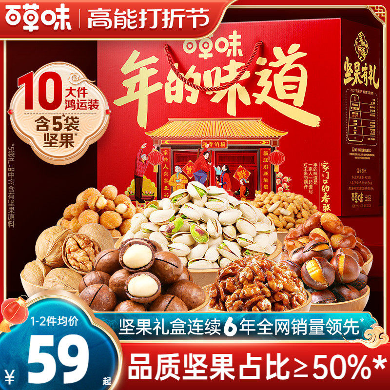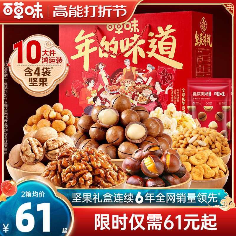 百草味纯坚果大礼包年货干果零食新年礼盒春节过年送礼品长辈整箱