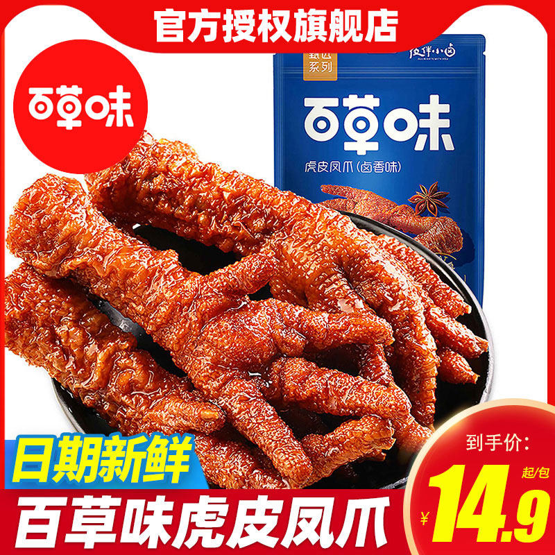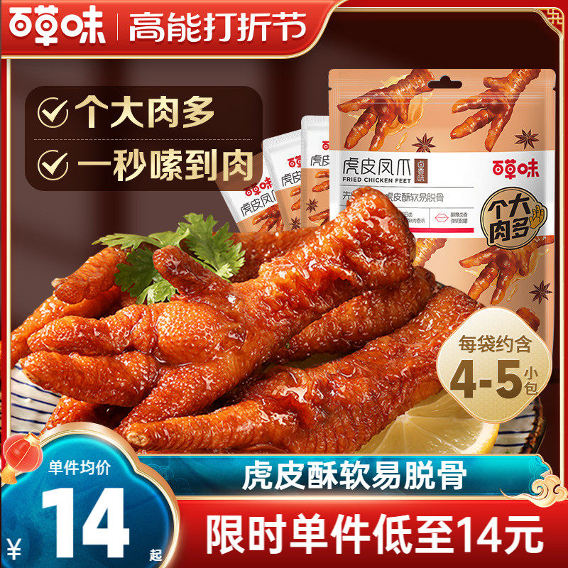 百草味虎皮凤爪120g*3包卤肉卤味香辣味酱鸡爪子肉类零食小吃批发