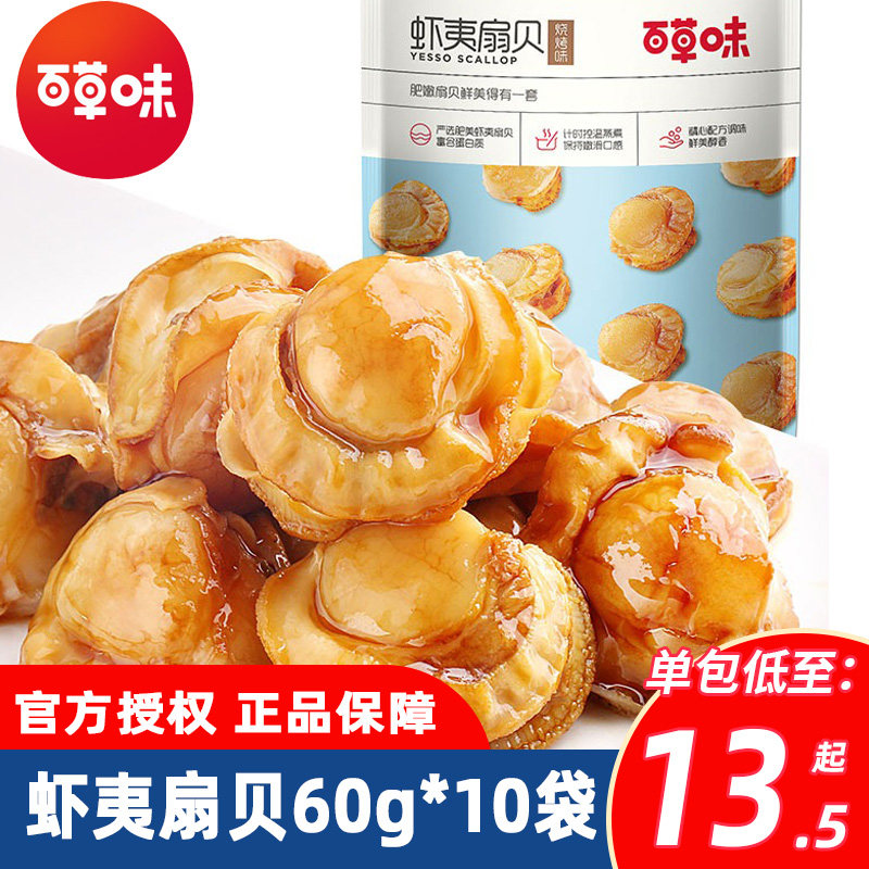百草味虾夷扇贝60g*10袋扇贝肉即食海鲜熟食麻辣小吃开袋即食真空