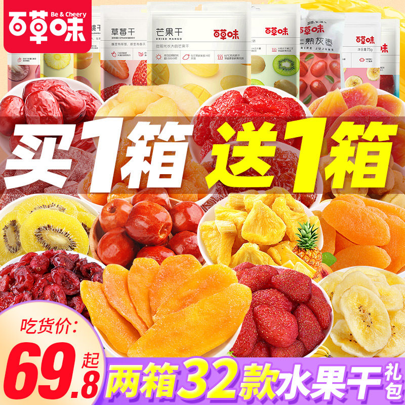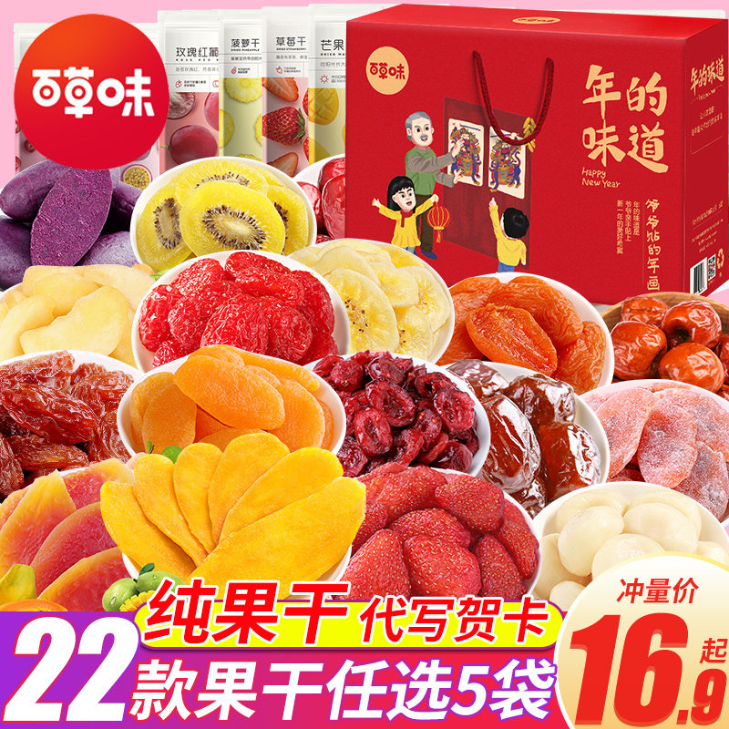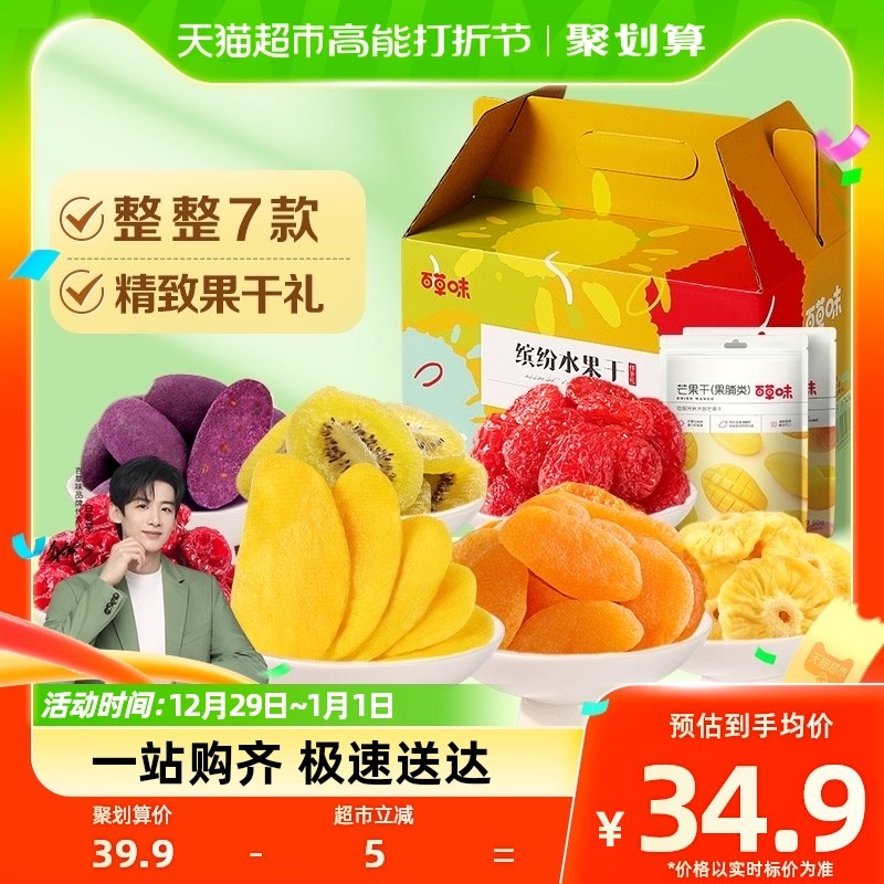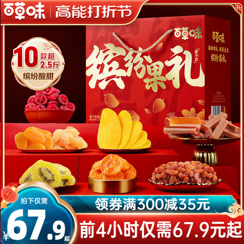 百草味水果干零食大礼包新年货礼盒蜜饯果脯混合装休闲小吃芒果干
