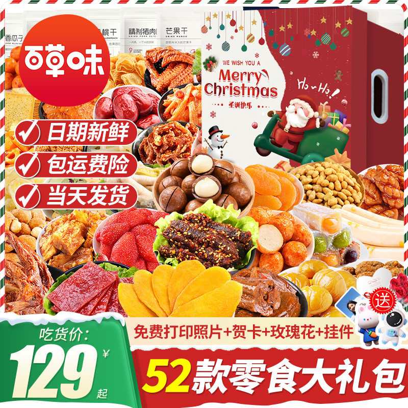 百草味圣诞节零食大礼包冬季送女友生日礼物休闲食品小吃整箱男生