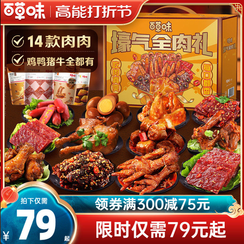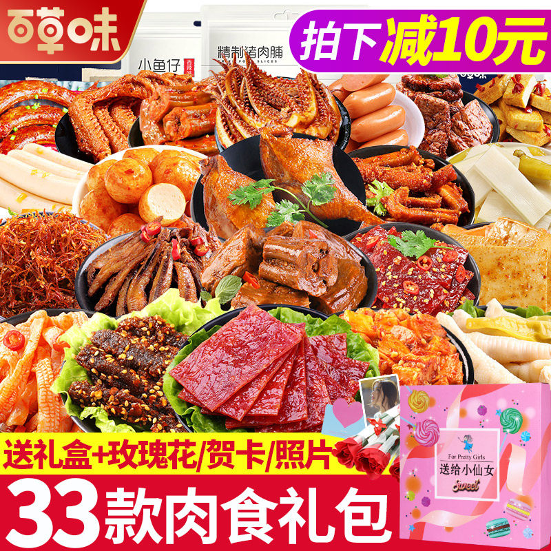 百草味零食大礼包纯肉食类送女友休闲食品充饥夜宵男麻辣小吃卤味