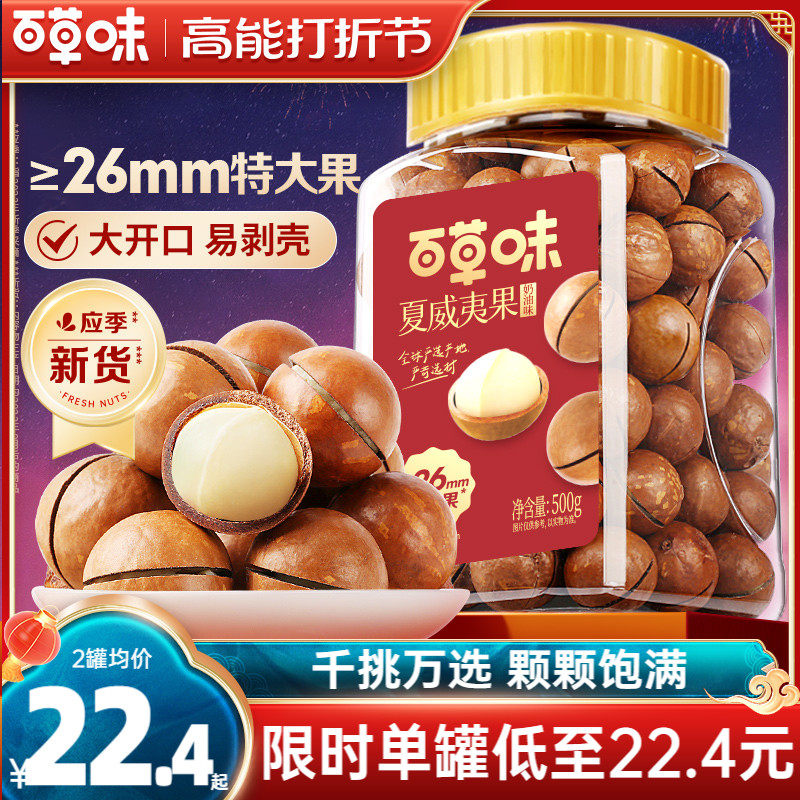 百草味夏威夷果新货薄壳500g年货罐装奶油味健康坚果干果零食批发