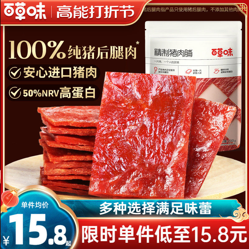 百草味精制猪肉脯零食155g靖江风味猪肉干肉片即食熟食解馋小零食