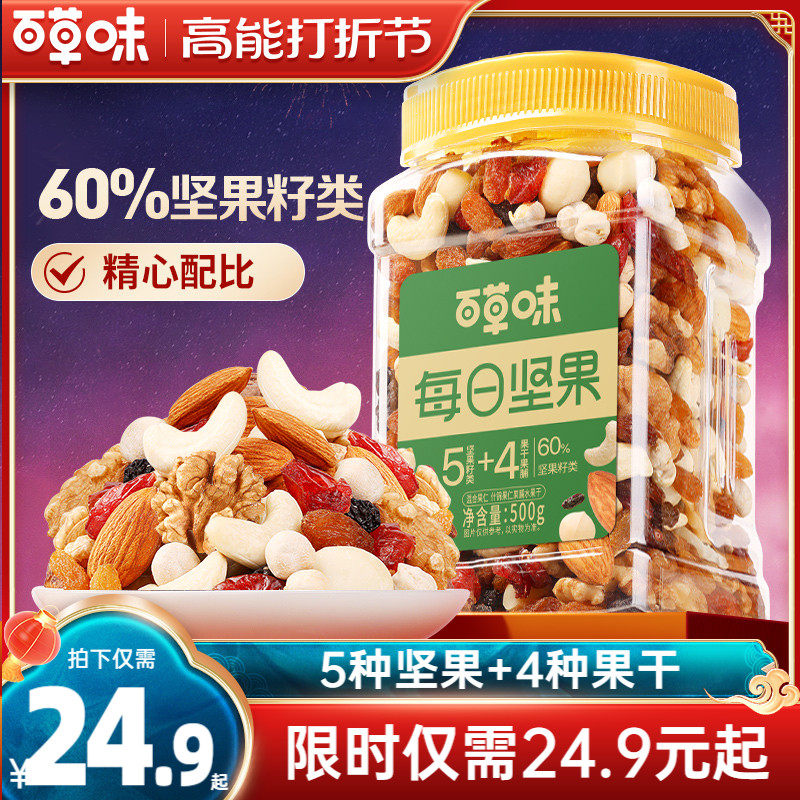 百草味每日坚果混合果仁新年货罐装500g休闲孕妇零食混合干果大全