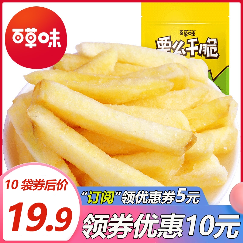 【百草味-薯条30g*10】膨化食品小吃好吃的休闲零食土豆棒