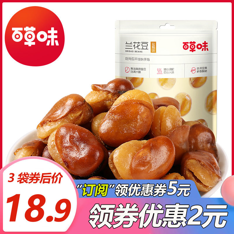【百草味-盐焗味兰花豆210g*3袋】蚕豆零食网红小吃豆子小包装