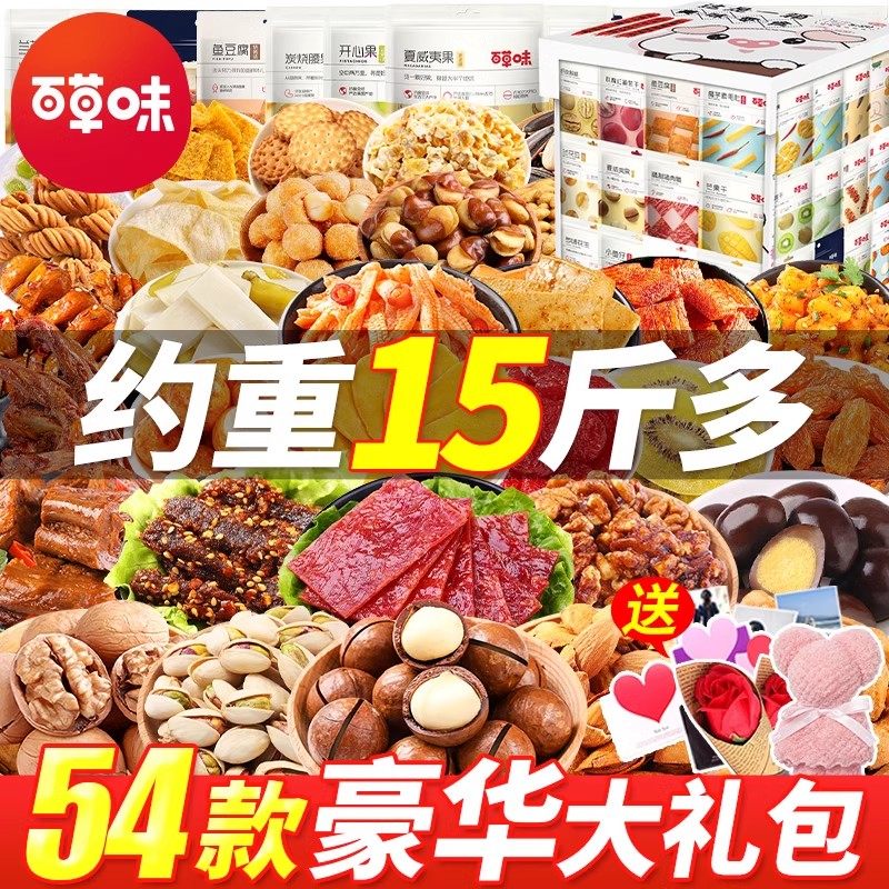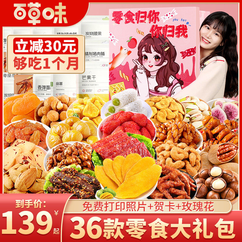 百草味零食大礼包送女友小吃休闲食品各种美食大全过年货礼盒整箱