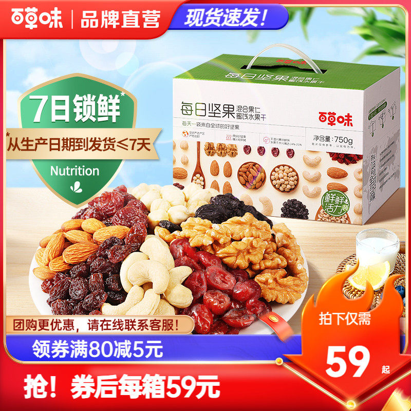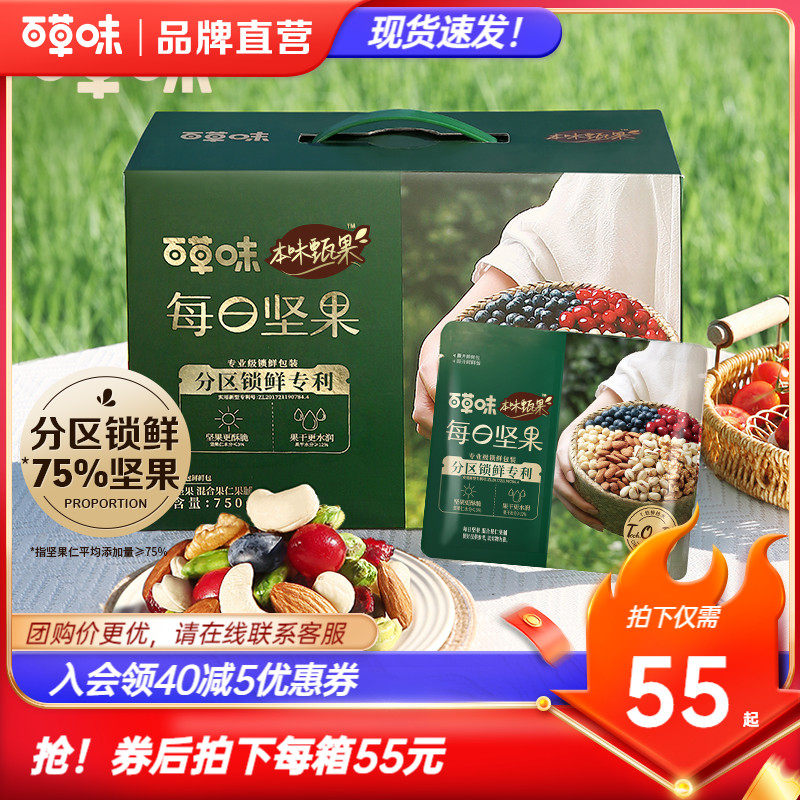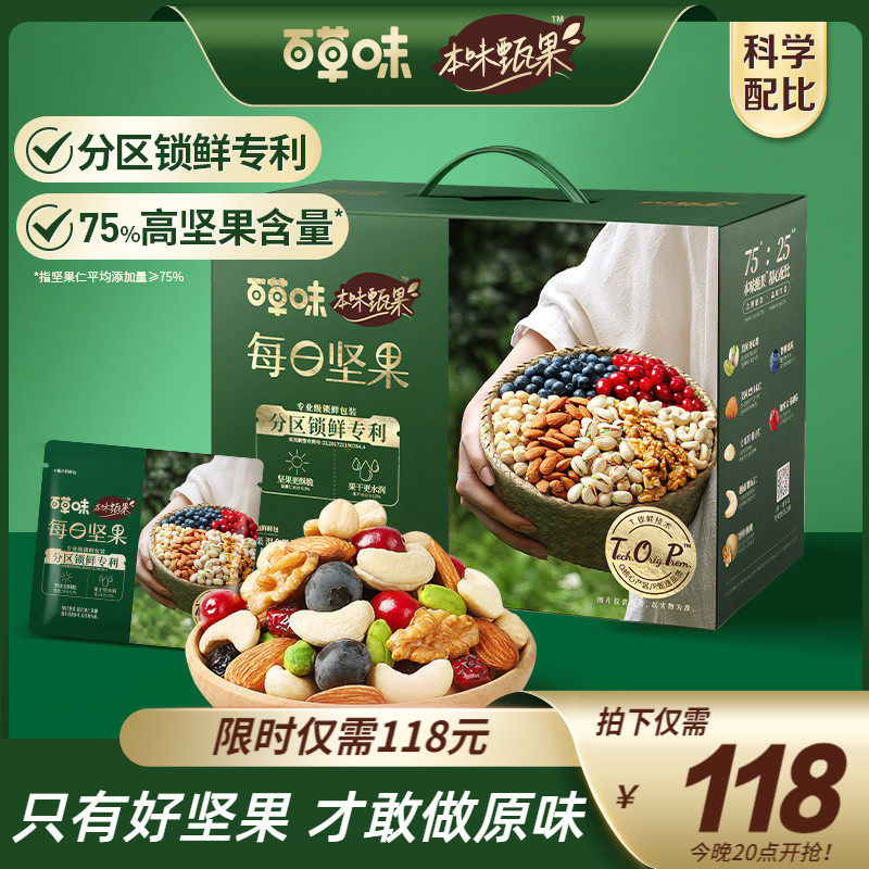 百草味本味甄果每日坚果750g混合年货干果礼盒大礼包孕妇零食送礼