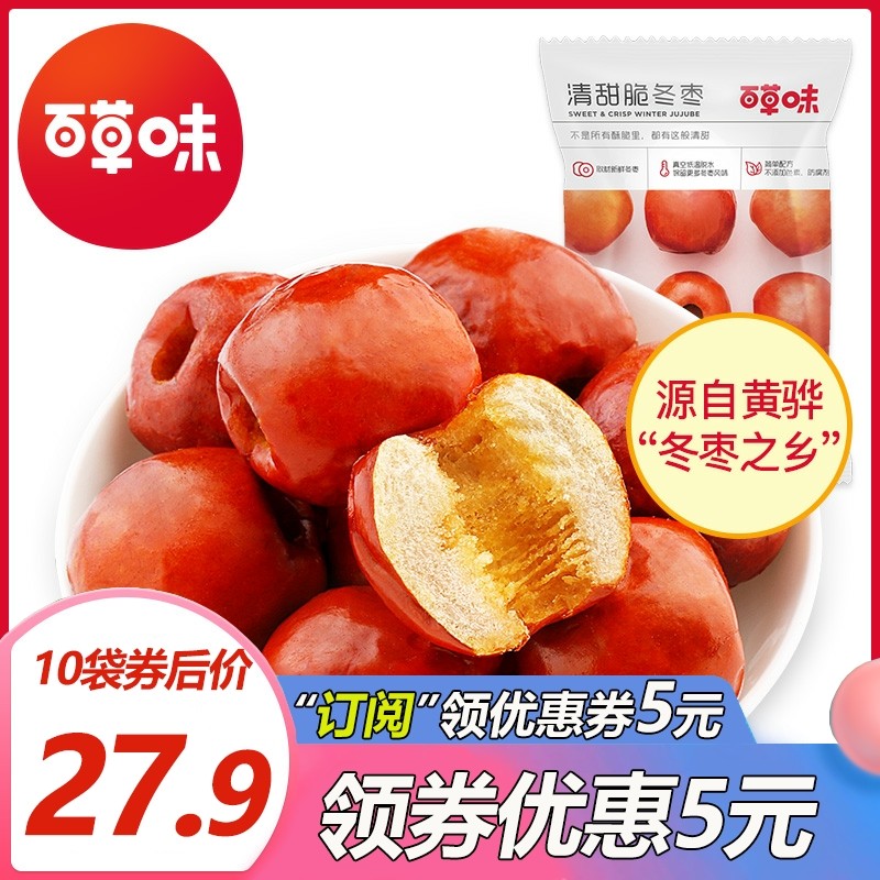 【百草味脆冬枣35gx10袋】黄骅脆冬枣无核酥脆红枣干果