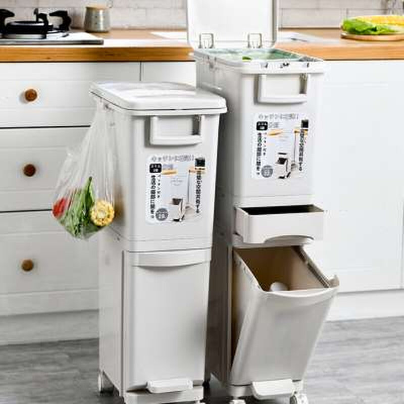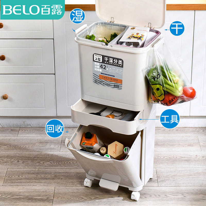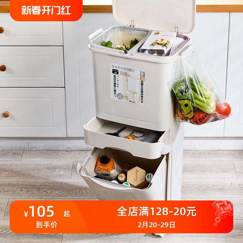 百露厨房垃圾分类垃圾桶家用干湿分离带盖大号脚踏日本内桶脚踏式
