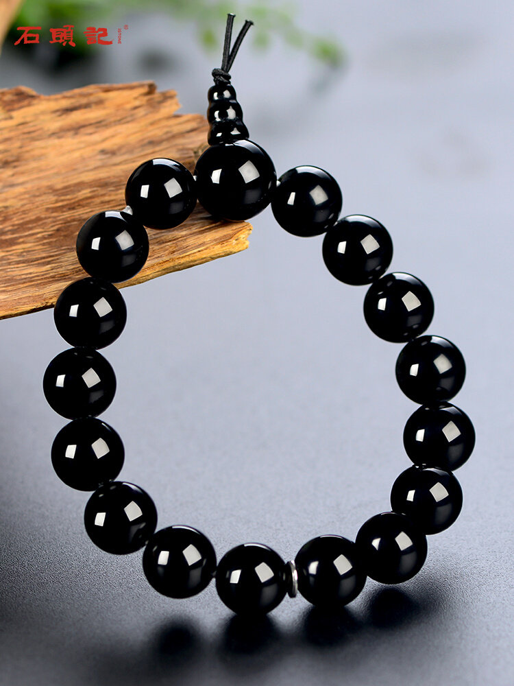 石头记黑曜石手链手串男女 首饰礼物 好运佛珠情侣手串手链