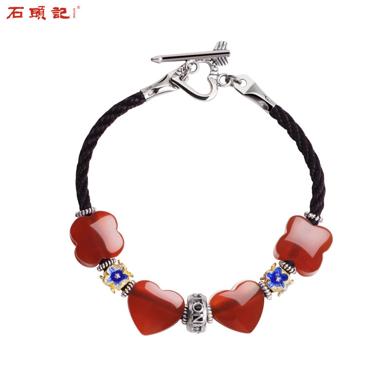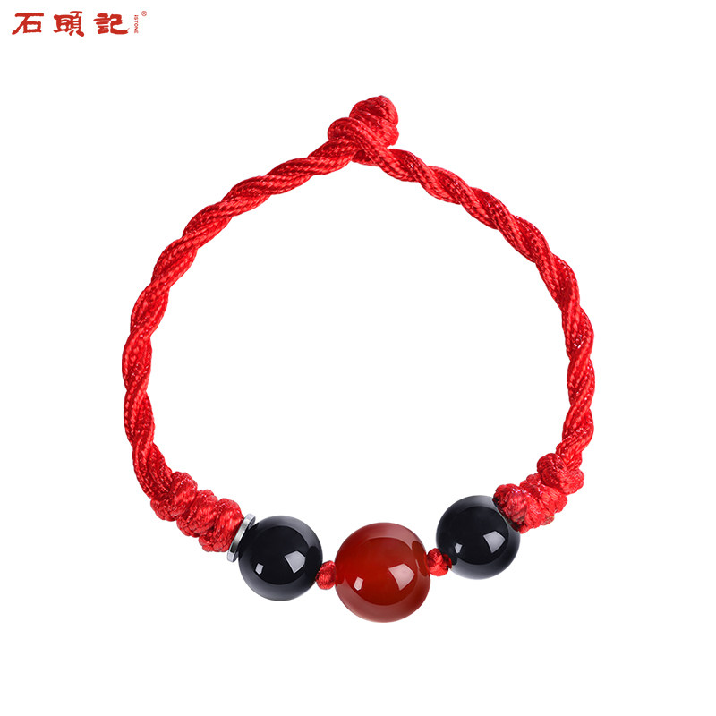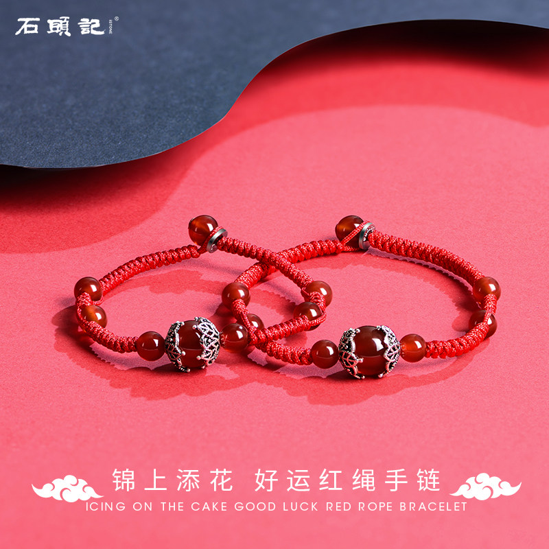 石头记锦上添花手工编织红绳手链本命年红玛瑙手串红豆手链
