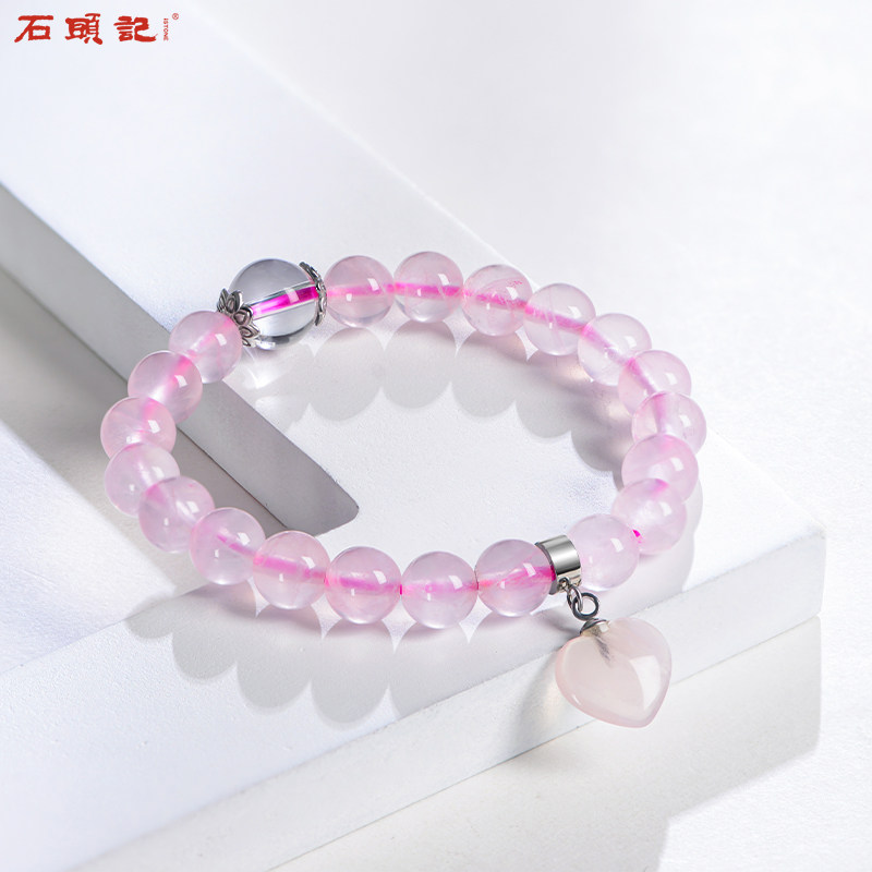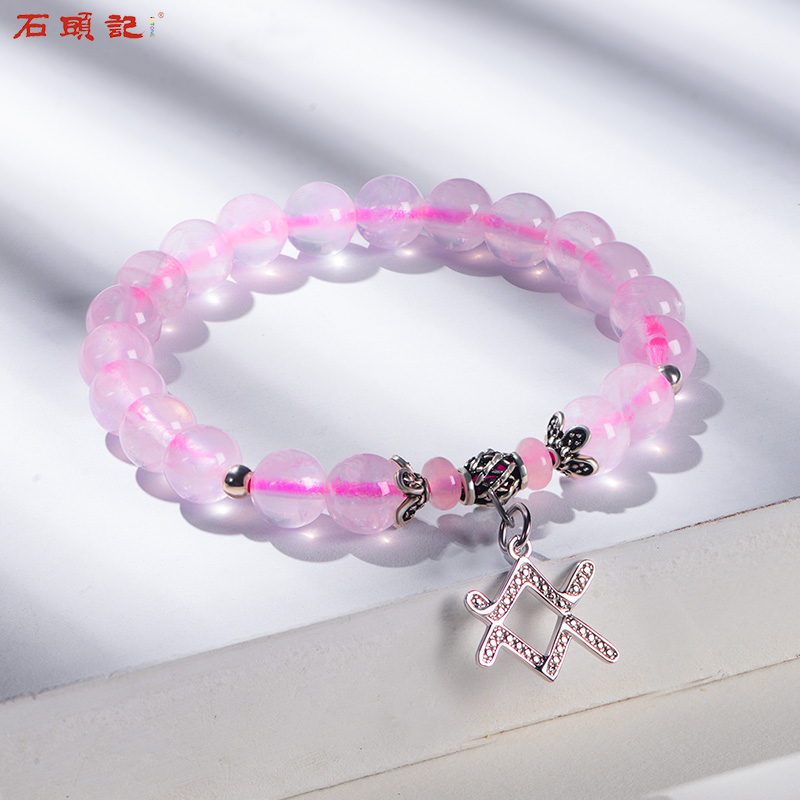 石头记一往情深天然粉水晶手串女芙蓉石手链送女友节日礼物