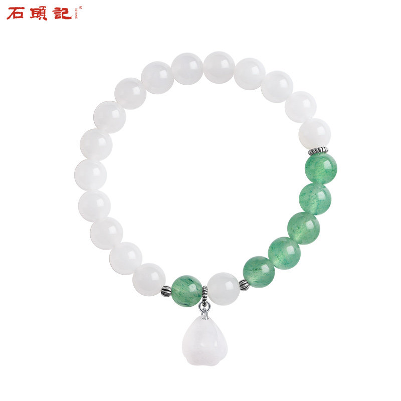 iSTONE石头记京白玉手链绿东陵玉白松石手串女 水晶手链流行饰品