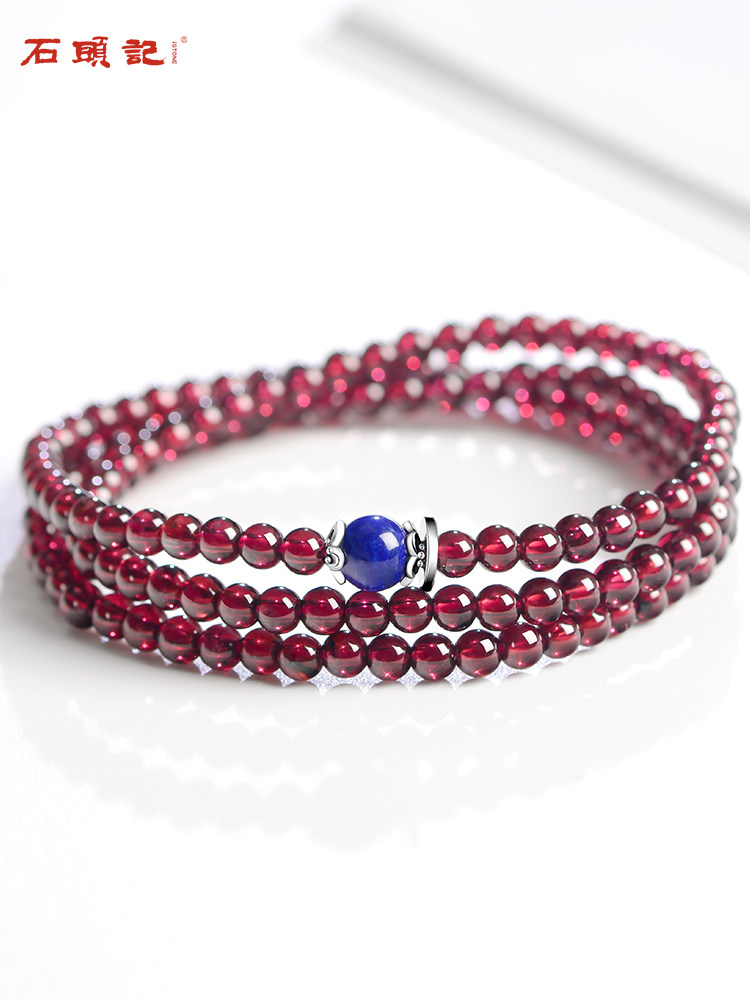 石头记石榴石手链女天然酒红色多圈手串情人节礼物