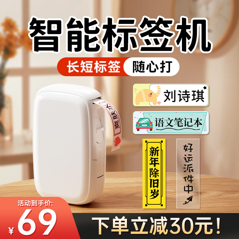 精臣B21标签打印机可连手机不干胶热敏标签机蓝牙家用小型办公二维码食品生产日期姓名彩色透明贴纸打印机