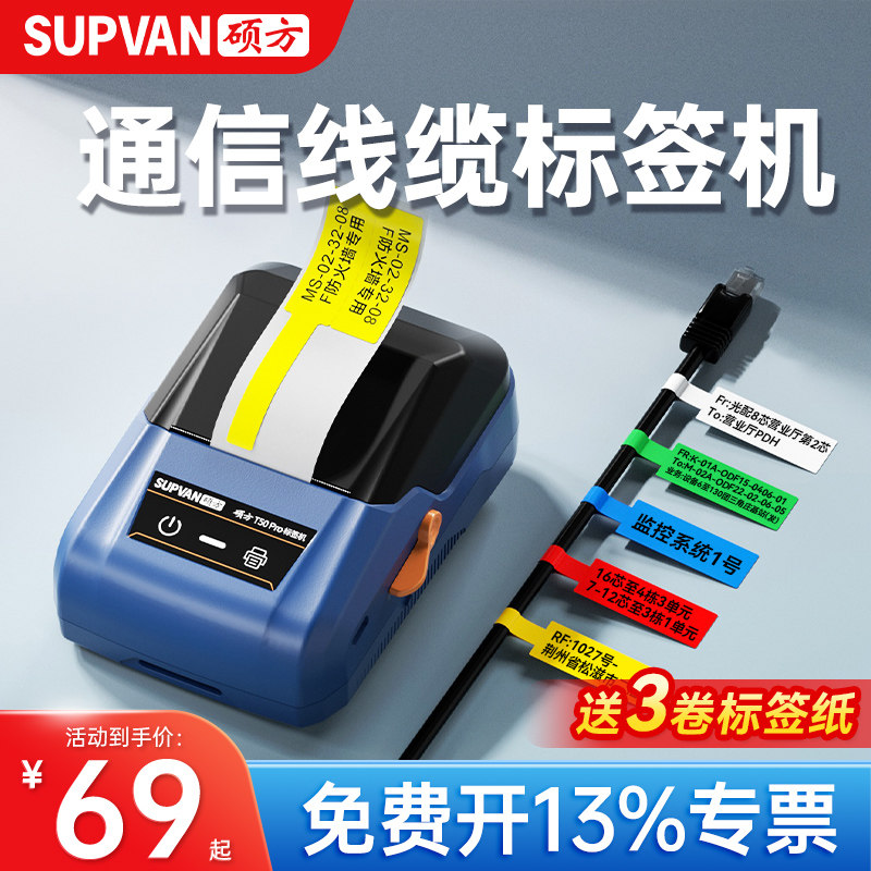硕方T50Pro/80通信线缆标签打印机可连手机工程网线刀型机房网络线标通讯手持蓝牙标签纸贴纸打标机标签机