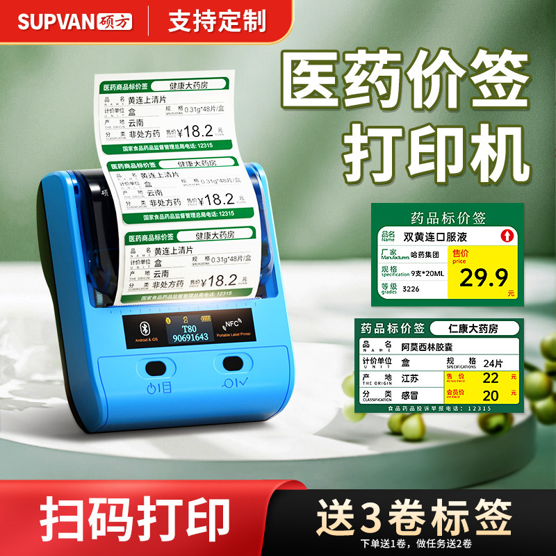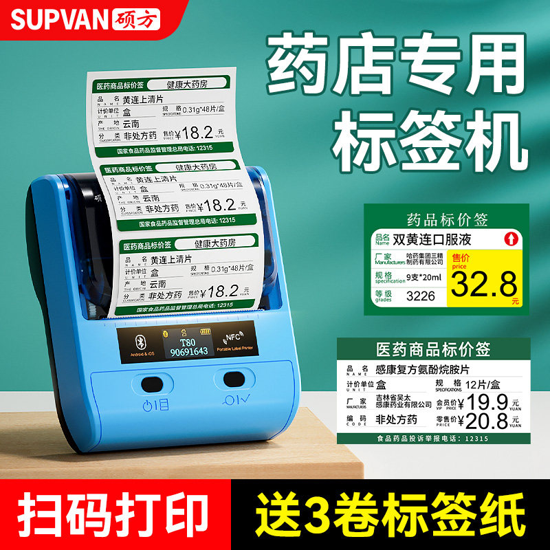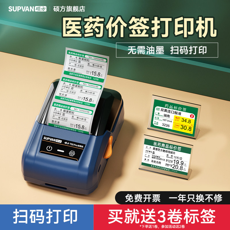 硕方T50Pro/T80药店价签打印机商用医药药品价格标价签商品货架药房标签手持便携式小型商品条码不干胶标签机