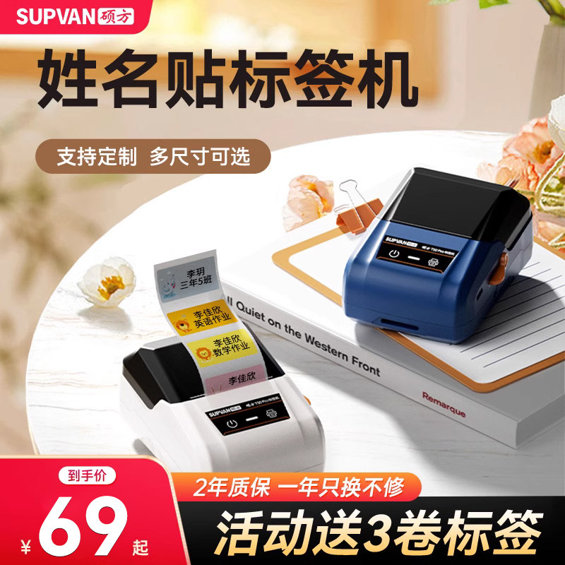 硕方T50家用标签打印机智能姓名贴彩色小型名字贴透明贴纸便签热敏可连手机多功能名字打印机不干胶标签机