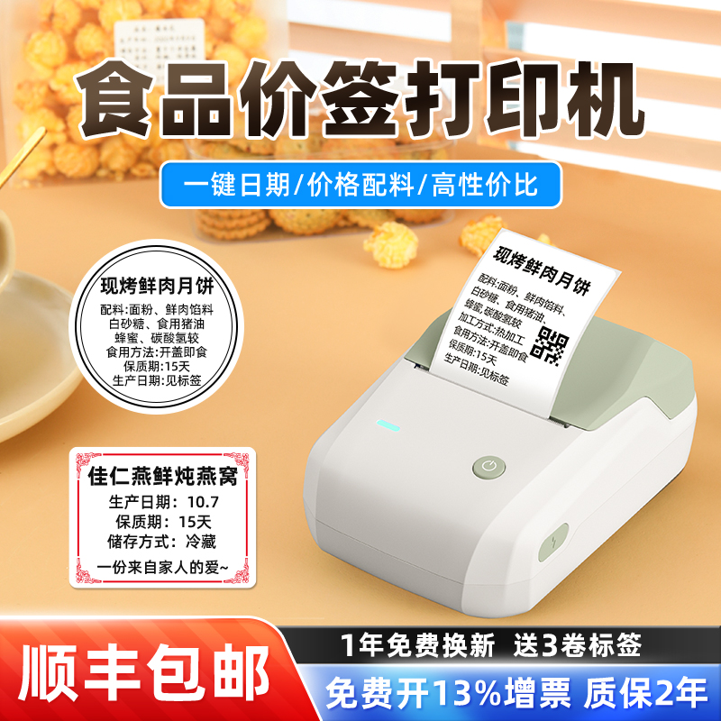 精臣B1食品月饼标签打印机食品卡片标签纸吊牌烘焙配料保质期价签打码机彩色茶叶生产日期打价格标签机