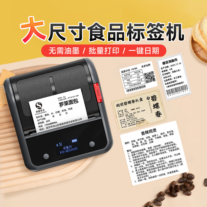精臣b3s食品大标签打印机小型多功能大尺寸热敏蓝牙打印机茶叶留样奶茶价格打码机烘焙配料表生鲜标签机商用