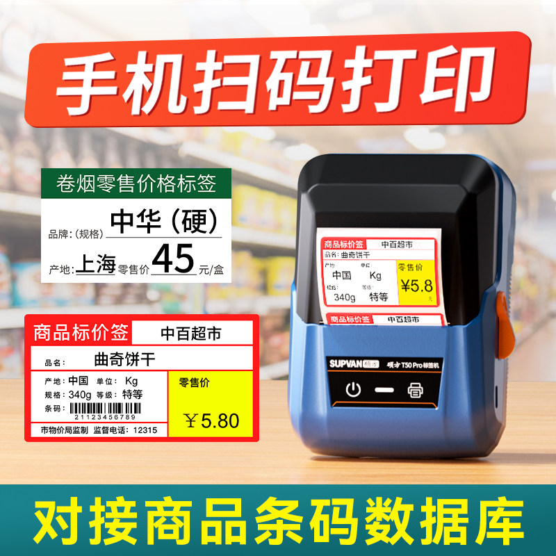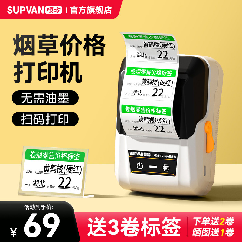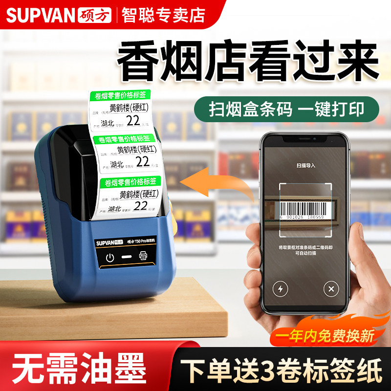 硕方T50pro烟价格标签打印机香烟卷烟扫码机超市烟柜烟架商品标价签打价格标签机便携蓝牙热敏不干胶标签机