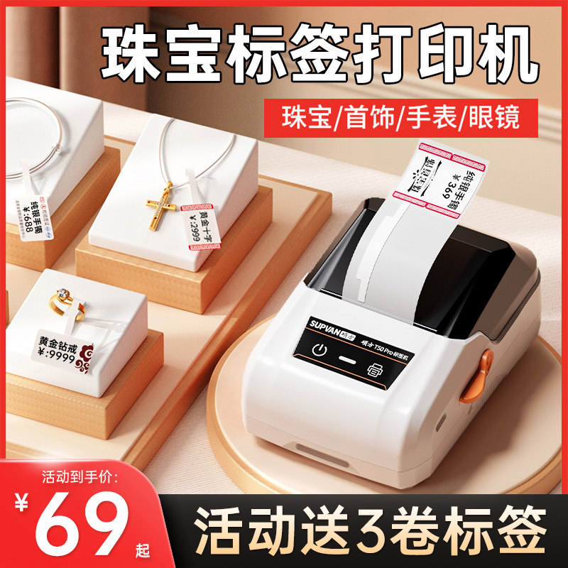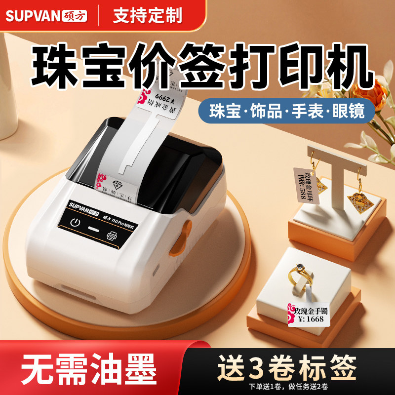 硕方T50pro珠宝标签打印机首饰饰品吊牌价格标签条码机商品贴纸热敏彩色不干胶打翡翠玉石项链黄金标签机
