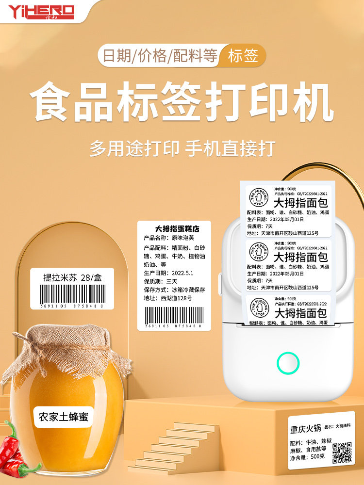 谊和食品标签打印机yp10s手持小型打价机热敏不干胶价签打印机糕点蔬菜奶茶配料日期合格证打价格标签机