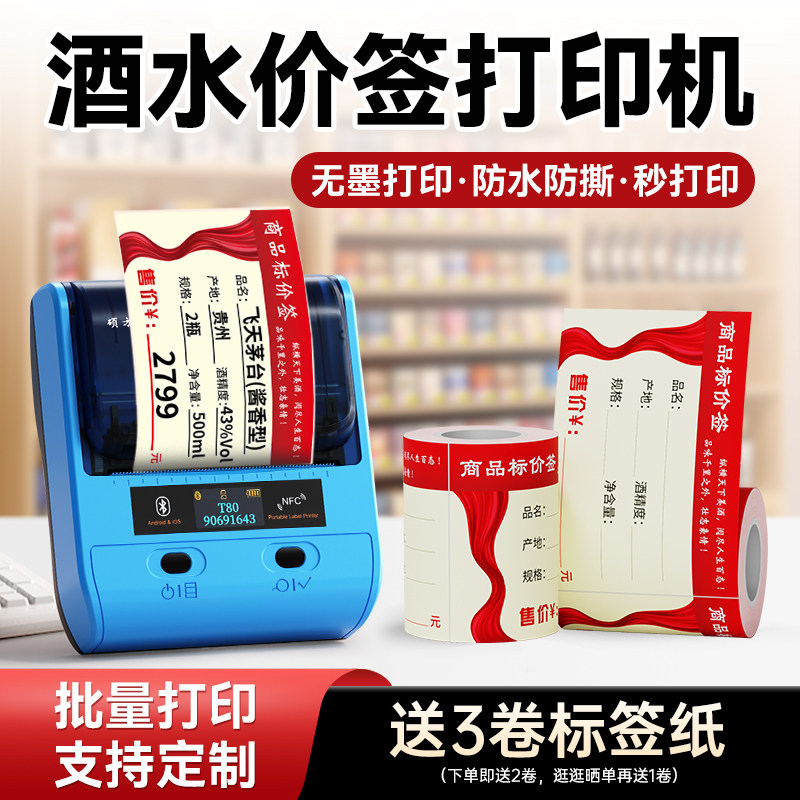硕方T50/T80烟草价格标签打印机湖南邵阳红色烟草价签超市零售卷烟香烟便利店商品标价签热敏打价格标签机