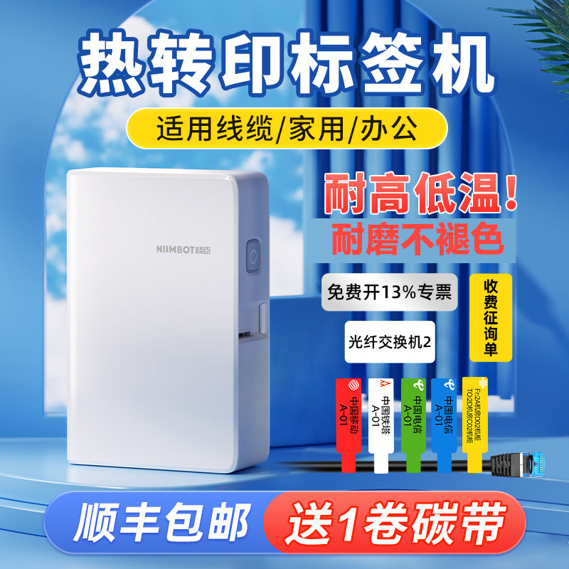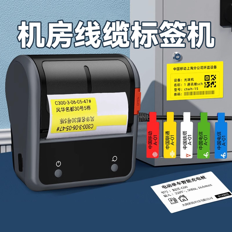 精臣M2线缆热转印标签打印机移动电信机房网络弱电光纤尾纤电箱电工哑银碳带标签机户外工程电线标签打印机